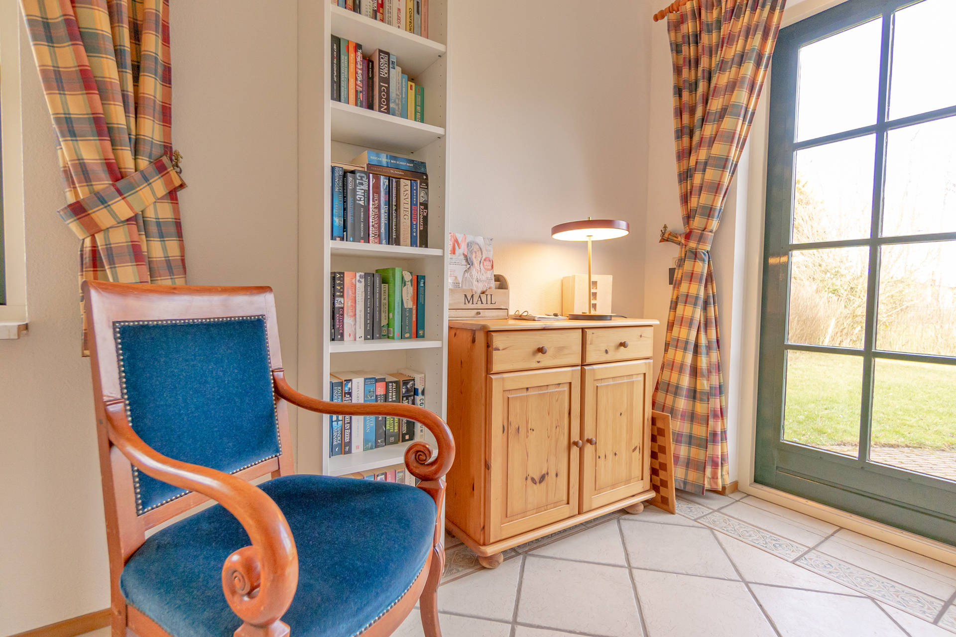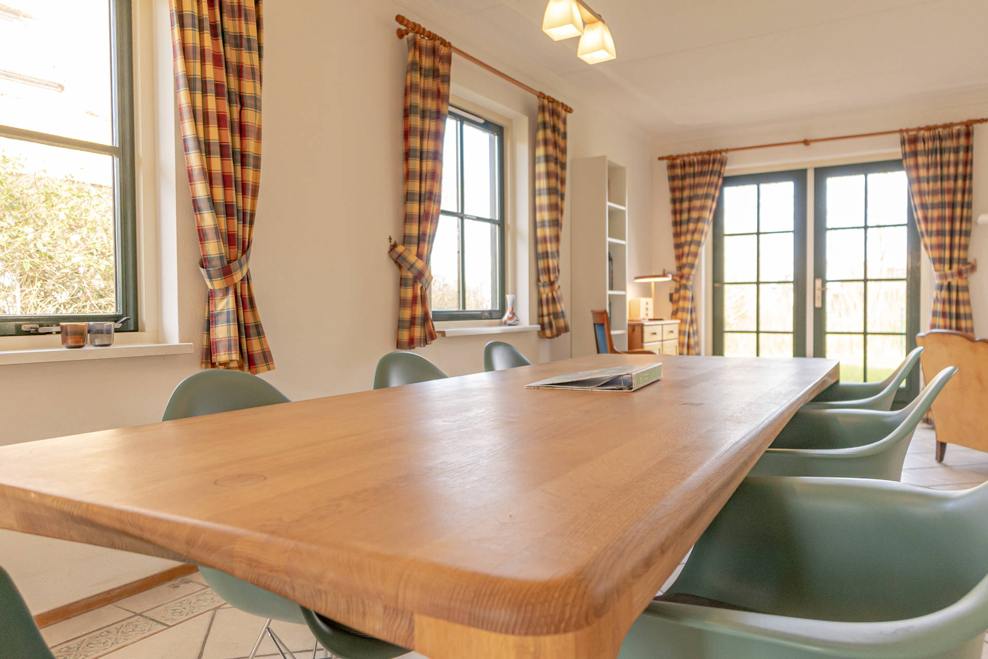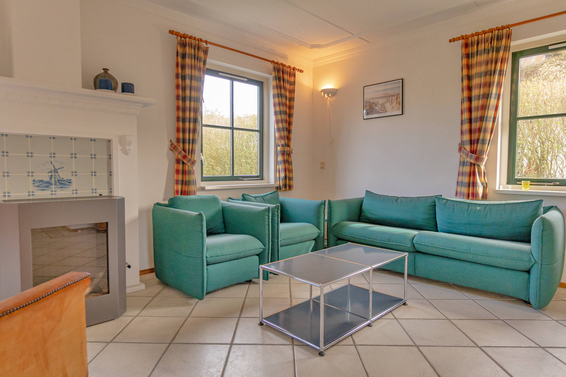 De zonnige woonkamer heeft 2 comfortabele banken. Via openslaande deuren in de woonkamer kan de heerlijke afgesloten tuin met terras bereikt worden. Hier kunt u heerlijk rustig en privé van de zon genieten. De tuin is geheel omzoomd en biedt veel beschutting tegen eventuele wind, u kunt hier dus al snel buiten zitten en het huis en tuin zijn hiermee ook erg geschikt om met kinderen of huisdier op vakantie te gaan.Het huis heeft een toilet in de hal op de begane grond.