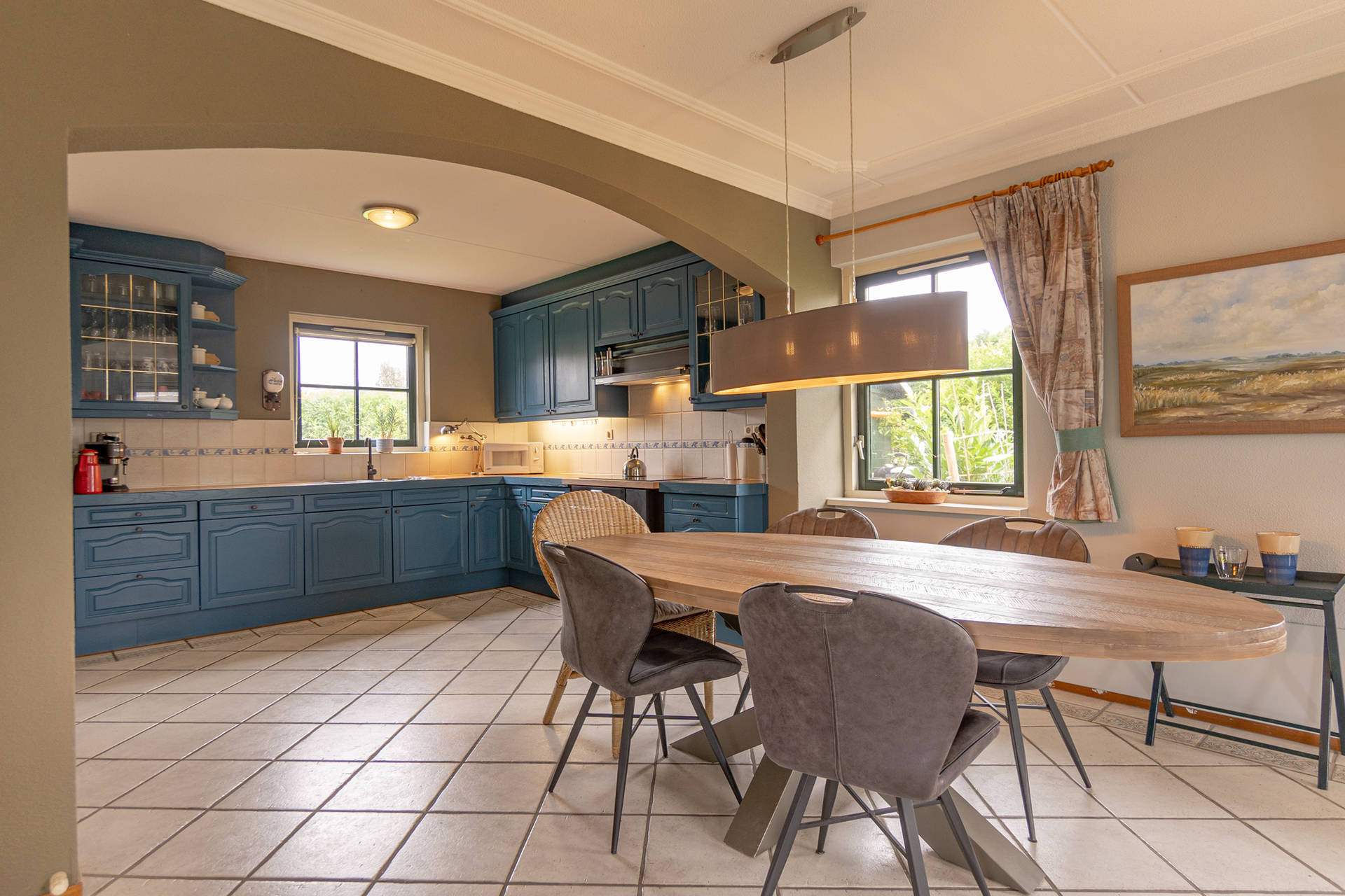 De vakantiewoning heeft een ruime, open en modern ingerichte keuken met vaatwasser, oven, magnetron, waterkoker en broodrooster. De eettafel biedt plaats aan 6 personen.