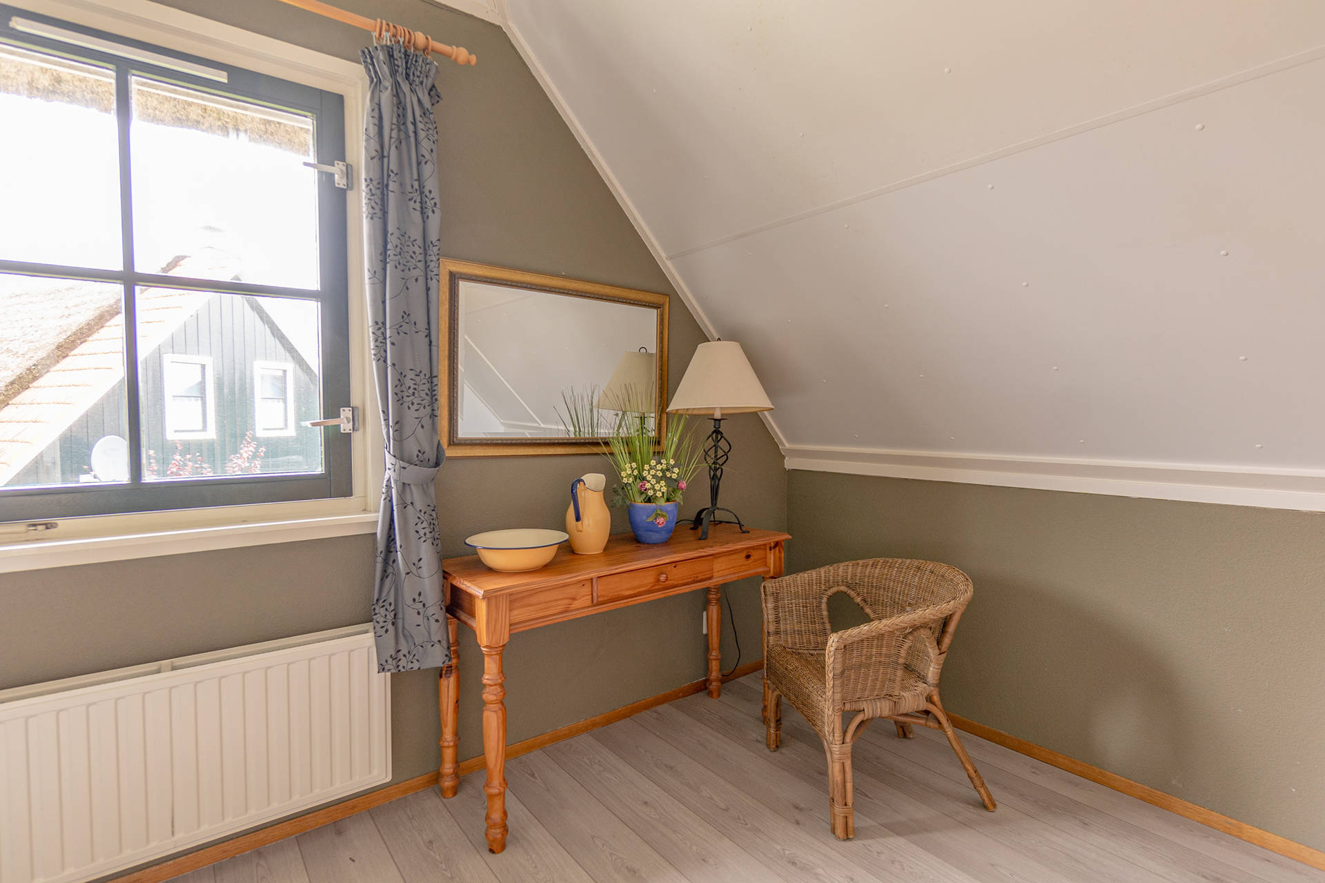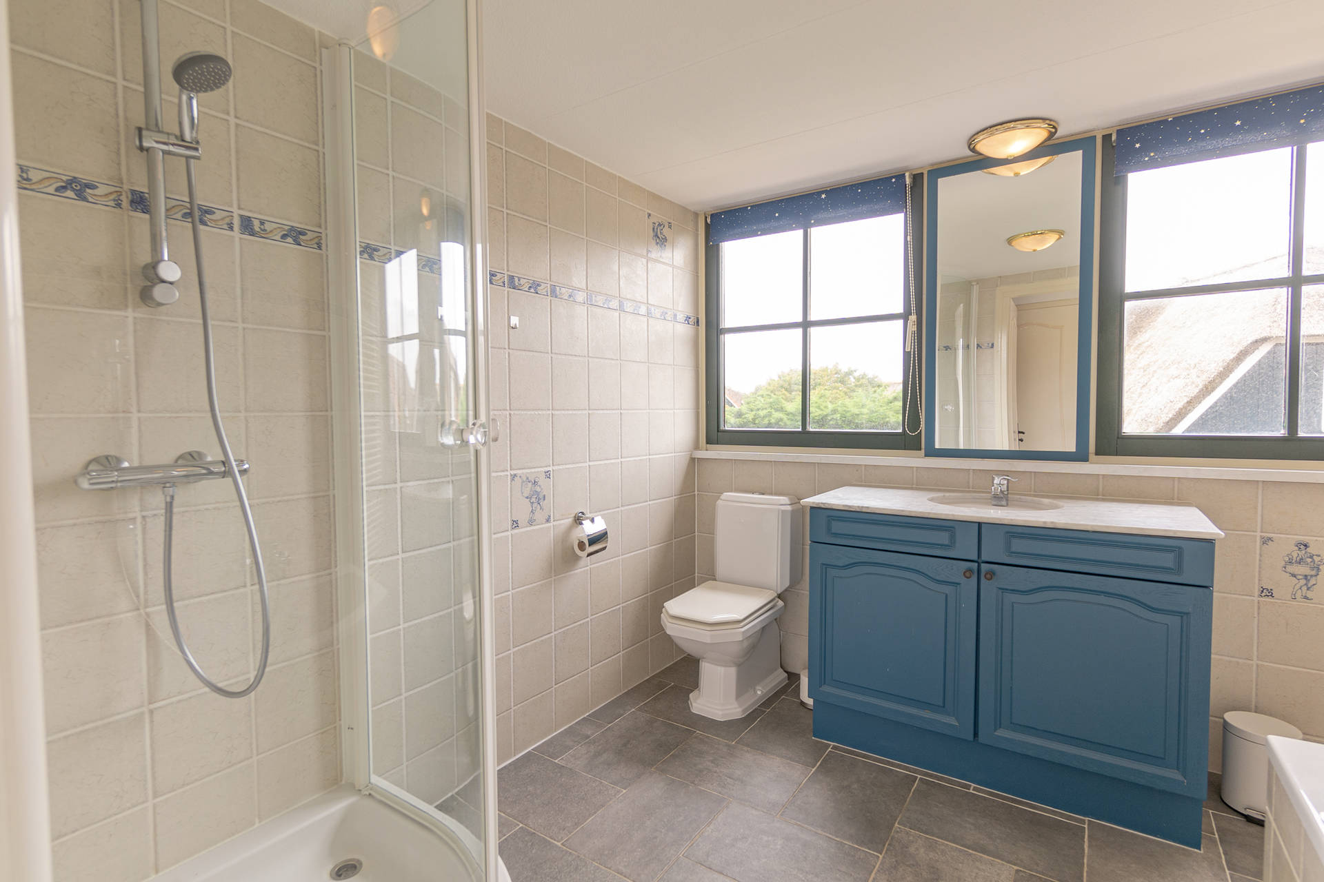 Het huis heeft op de eerste etage twee ruime slaapkamers. De eerste slaapkamer beschikt over 2 eenpersoons boxspring bedden (80x200 cm). De tweede slaapkamer beschikt over 3 eenpersoons boxspring bedden (80x200 cm). De badkamer heeft een douchecabine en separaat ligbad en wc. Een 2e wc is apart in de hal op de begane grond.