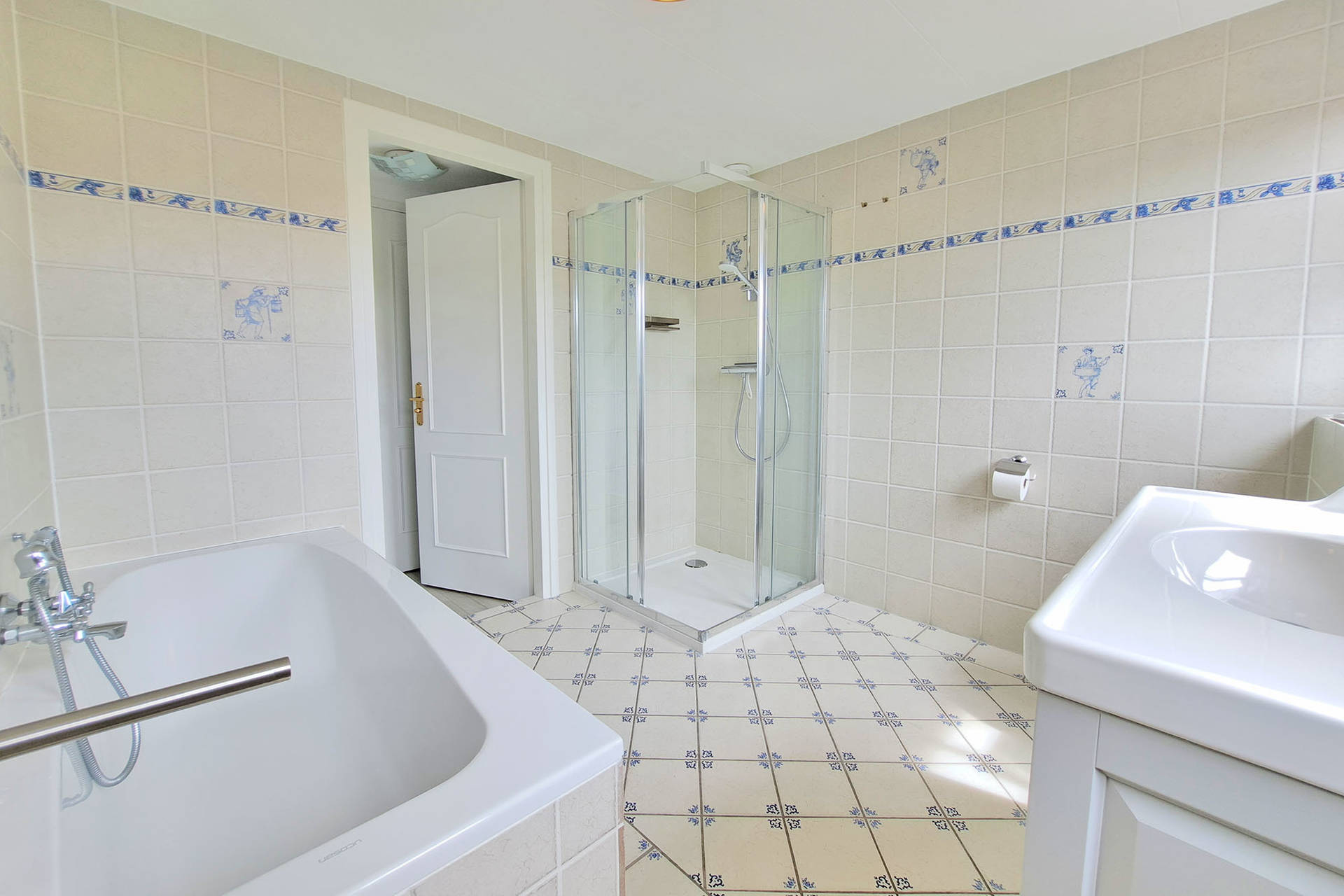 Op de eerste verdieping zijn 2 slaapkamers en een badkamer aanwezig. Slaapkamer 1 beschikt over 1 tweepersoonsbed en ruime kledingkast. Slaapkamer 2 heeft 2 éénpersoonsbedden ook op deze kamer is een kledingkast aanwezig. De badkamer is voorzien van een comfortabel ligbad, toilet, douchecabine en wastafel.