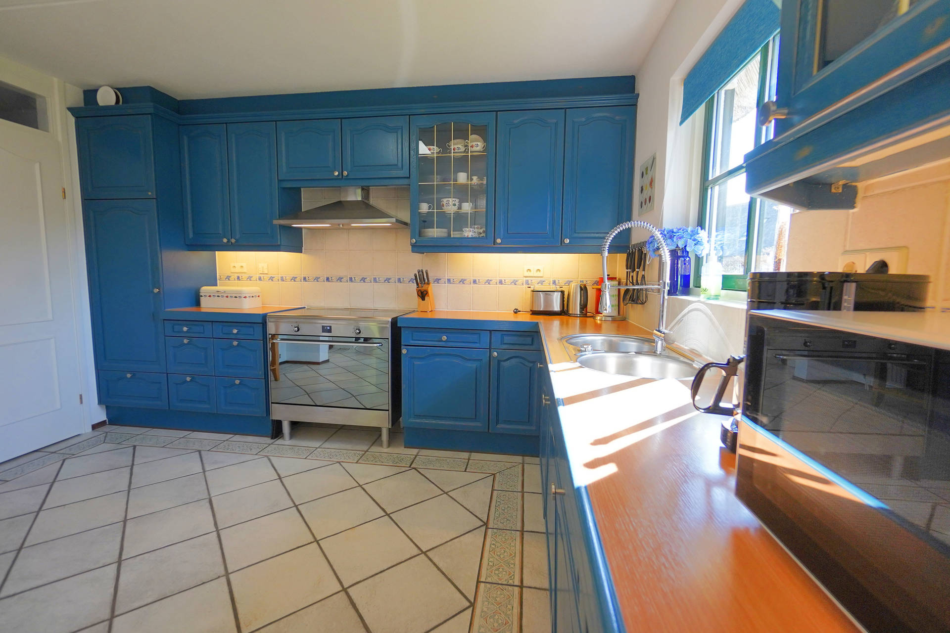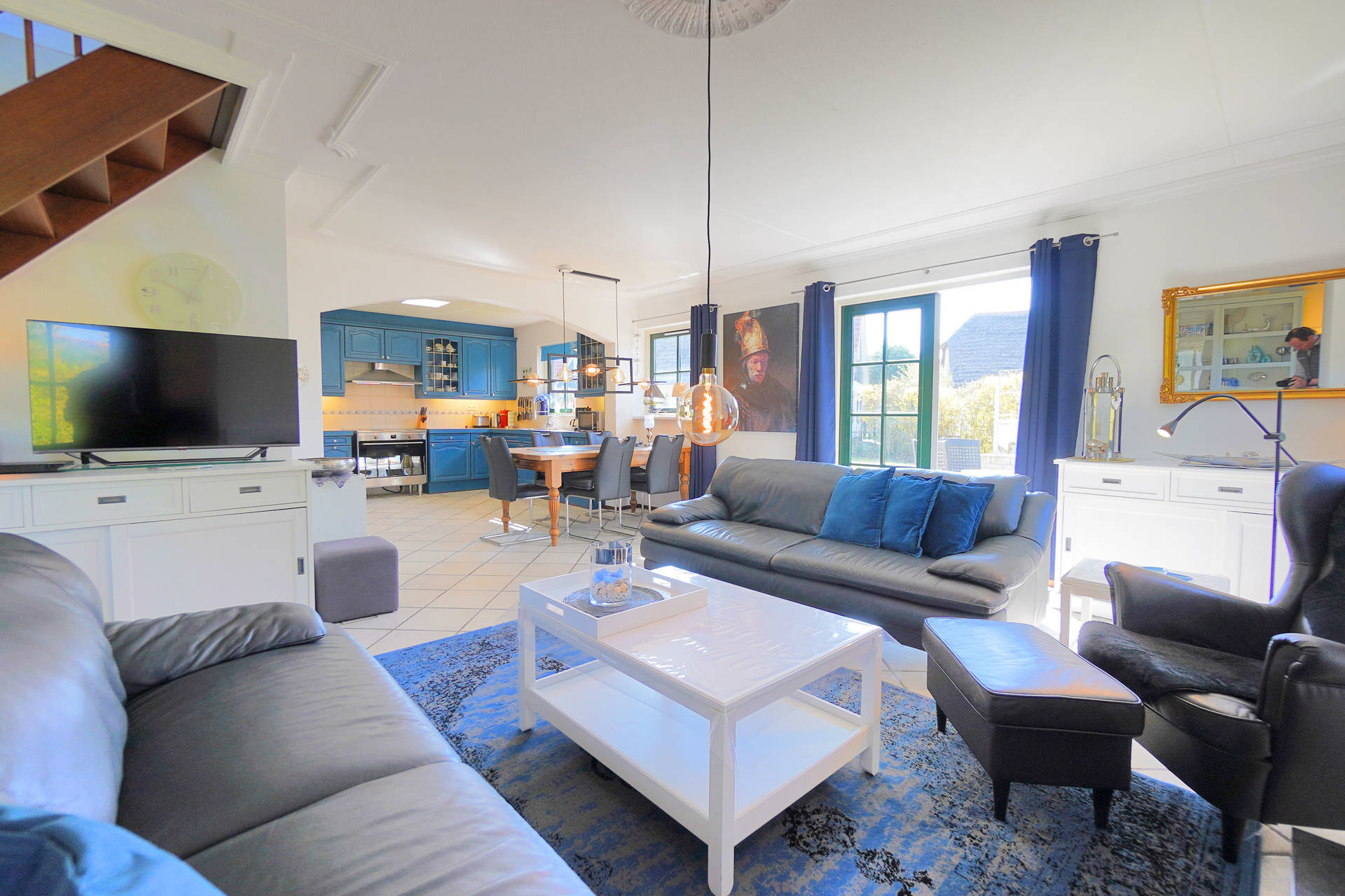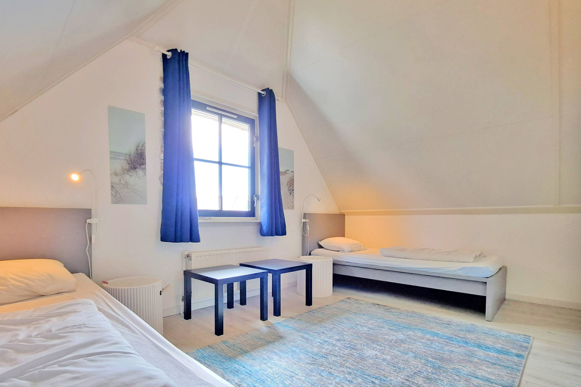 Het vakantiehuis is door 2 slaapkamers zeer geschikt voor 4 personen. Op de begane grond is een ruime woonkamer voorzien van ruime zithoek met open keuken. De keuken is voorzien van een filterkoffiezetapparaat, inductiekookplaat, oven, magnetron, vaatwasser en koelkast met vriesvak. Verder is er een bijkeuken met was-droogcombinatie.