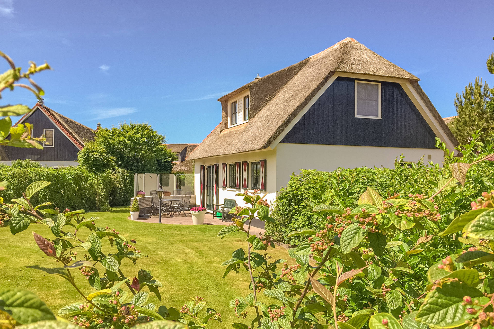 Een fijne vakantievilla op een ideale locatie. Net buiten het centrum van het kustdorp Callantsoog. Vanaf Buitenplaats 142 ben je met een kleine 10 minuten fietsen al op het strand. Het vakantiehuis is erg comfortabel waardoor je optimaal kunt genieten van je vakantie aan de kust. Op het park de Buitenplaats zijn de huizen voorzien van een ruime tuin, rietendak, witte buitenmuren en luiken bij de ramen.