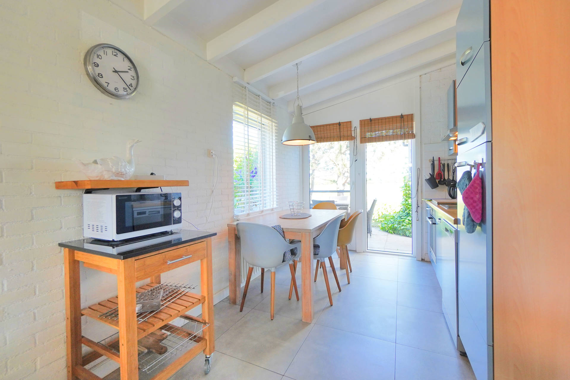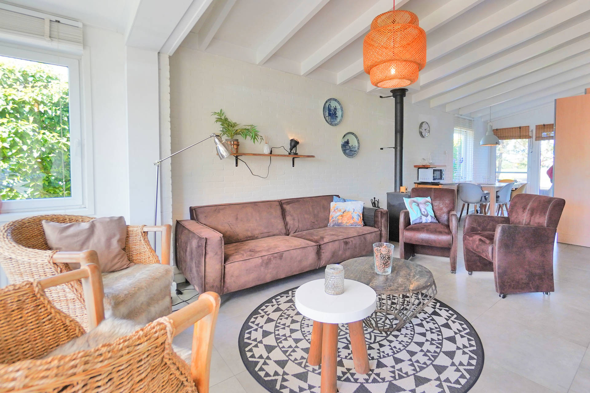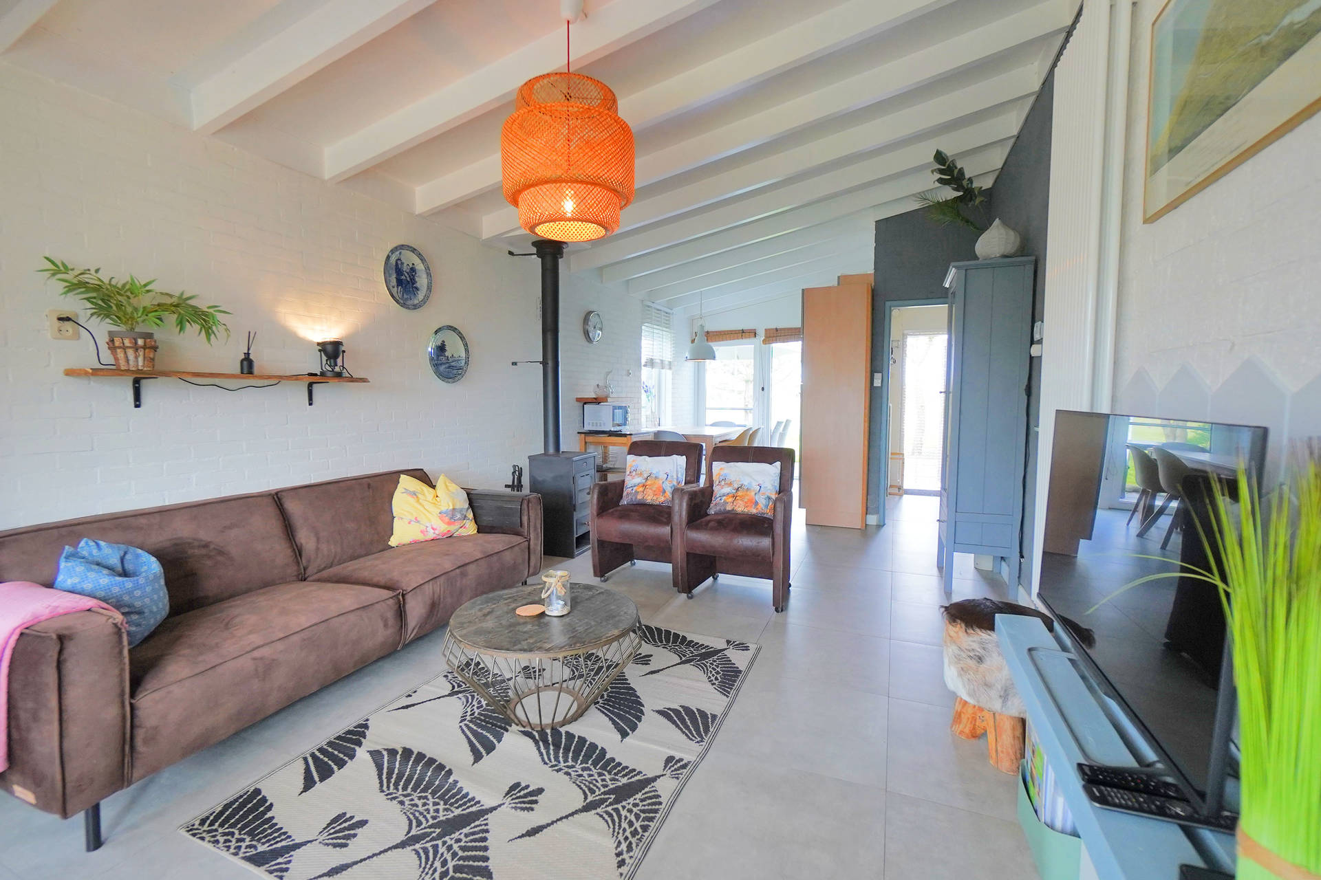 Het vakantiehuis beschikt over 3 slaapkamers, een met een stapelbed en een slaapkamer met een goed tweepersoonsbed en een slaapkamer met twee eenpersoonsbedden. De woning heeft een mooie lichte woonkamer en open keuken. De keuken is goed uitgerust met oa. koelkast met vriesvak, oven en vaatwasser. De woonkamer heeft een sfeervolle houtkachel.