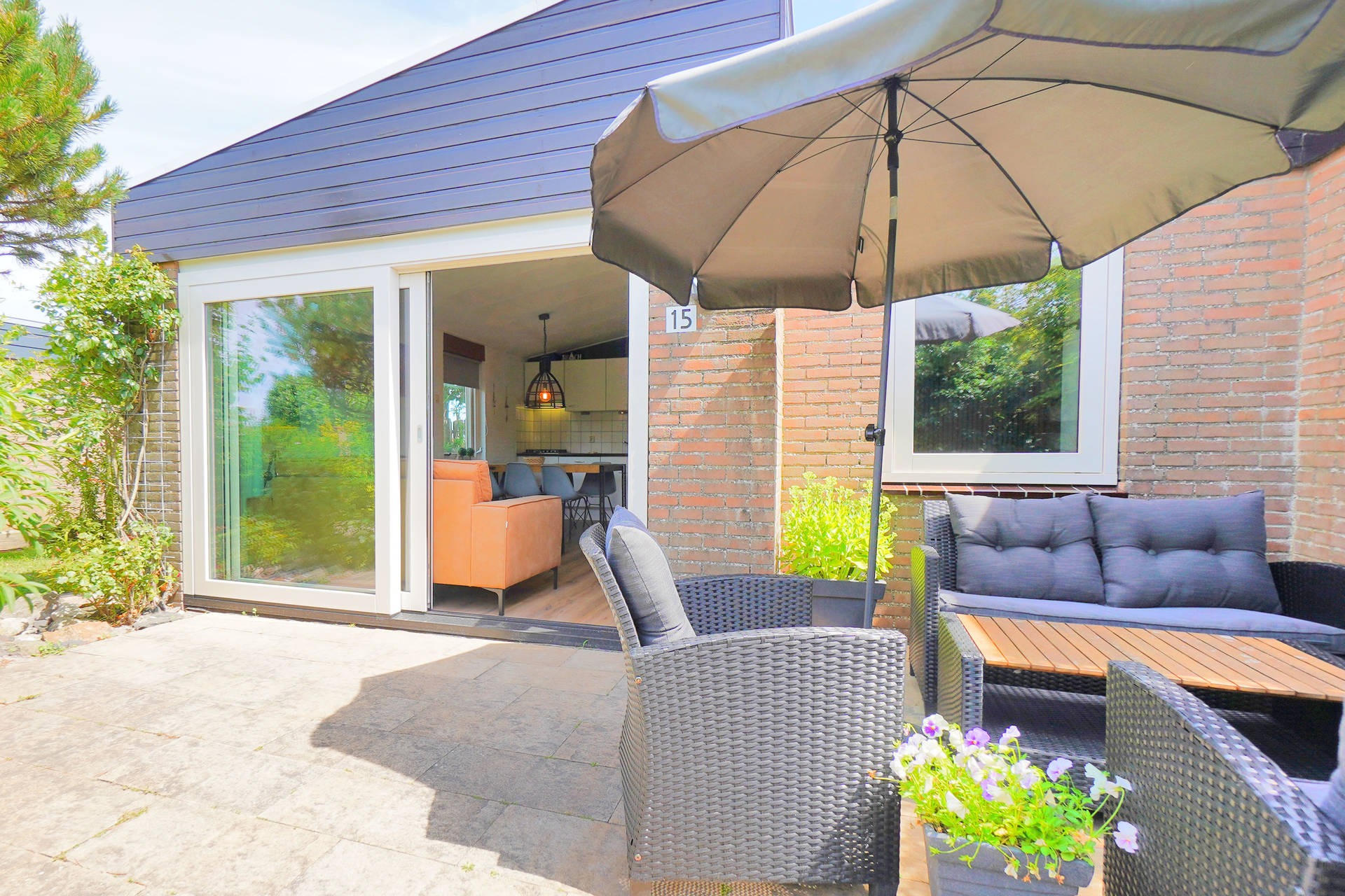 Het huis heeft een ruime voortuin en verhard terras aan de achterzijde. Een heerlijke plek voor uw vakantie.