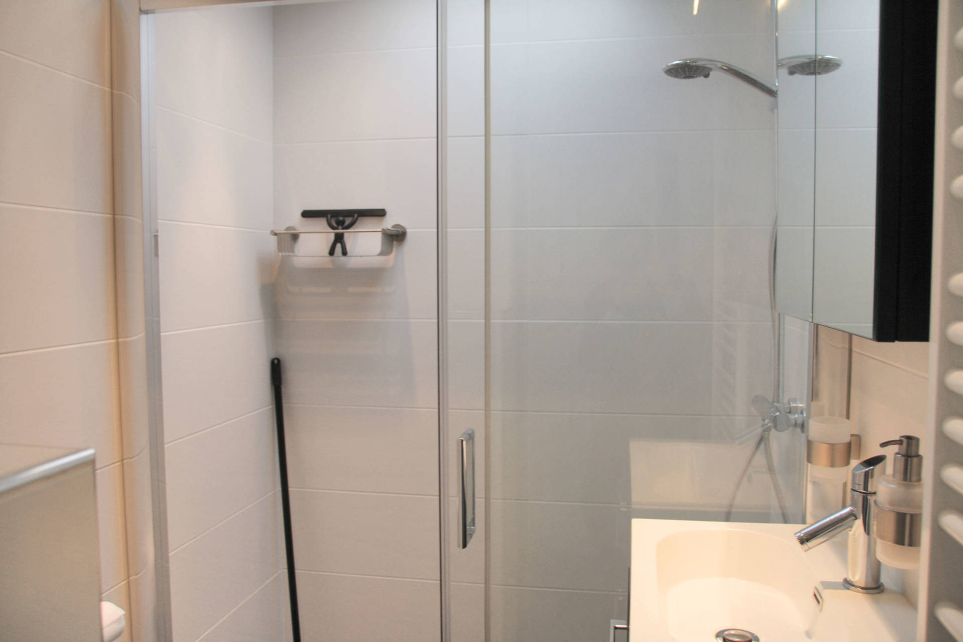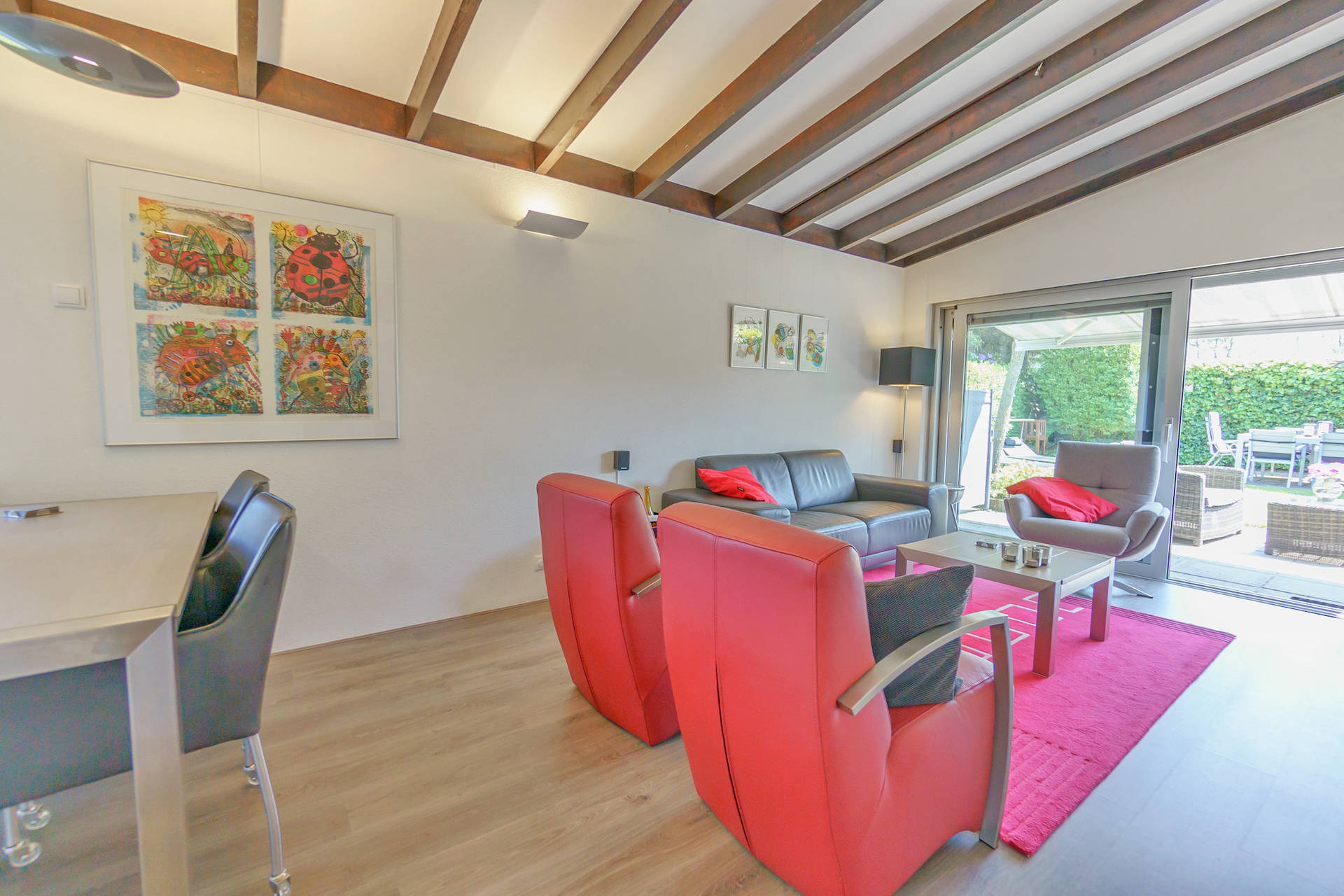 Daarnaast is er een moderne badkamer met douche, wc en sauna, plus een extra gastentoilet.