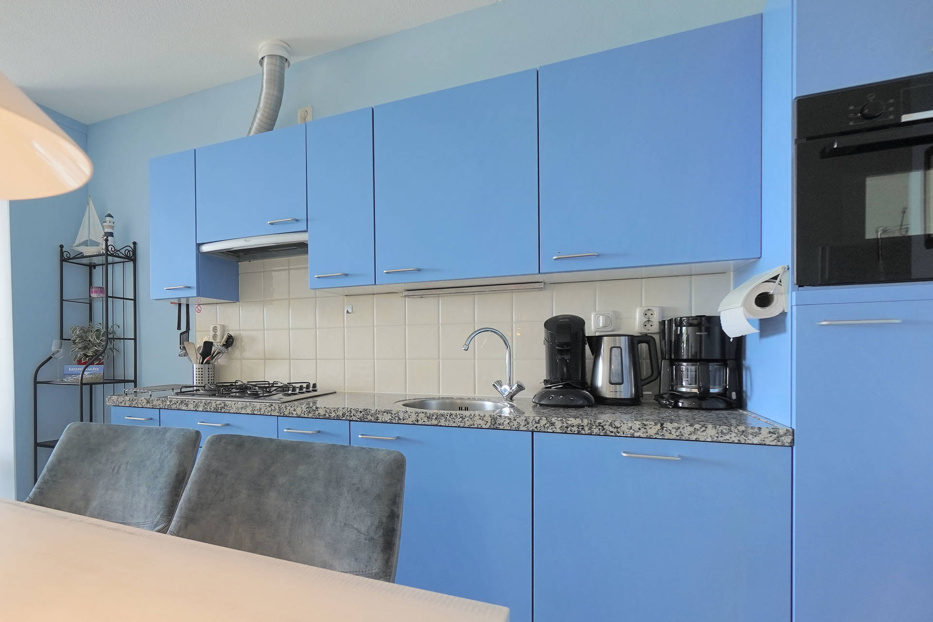 Uniek aan dit appartement is de "bedkast". De woning beschikt over een slaapkamer voor 2 personen en in de woonkamer twee volwaardige uitklapbare bedden. Hierdoor is de woning zeer geschikt voor 4 personen. U klapt 's ochtends eenvoudig de bedden weer omhoog en 's avonds weer omlaag.