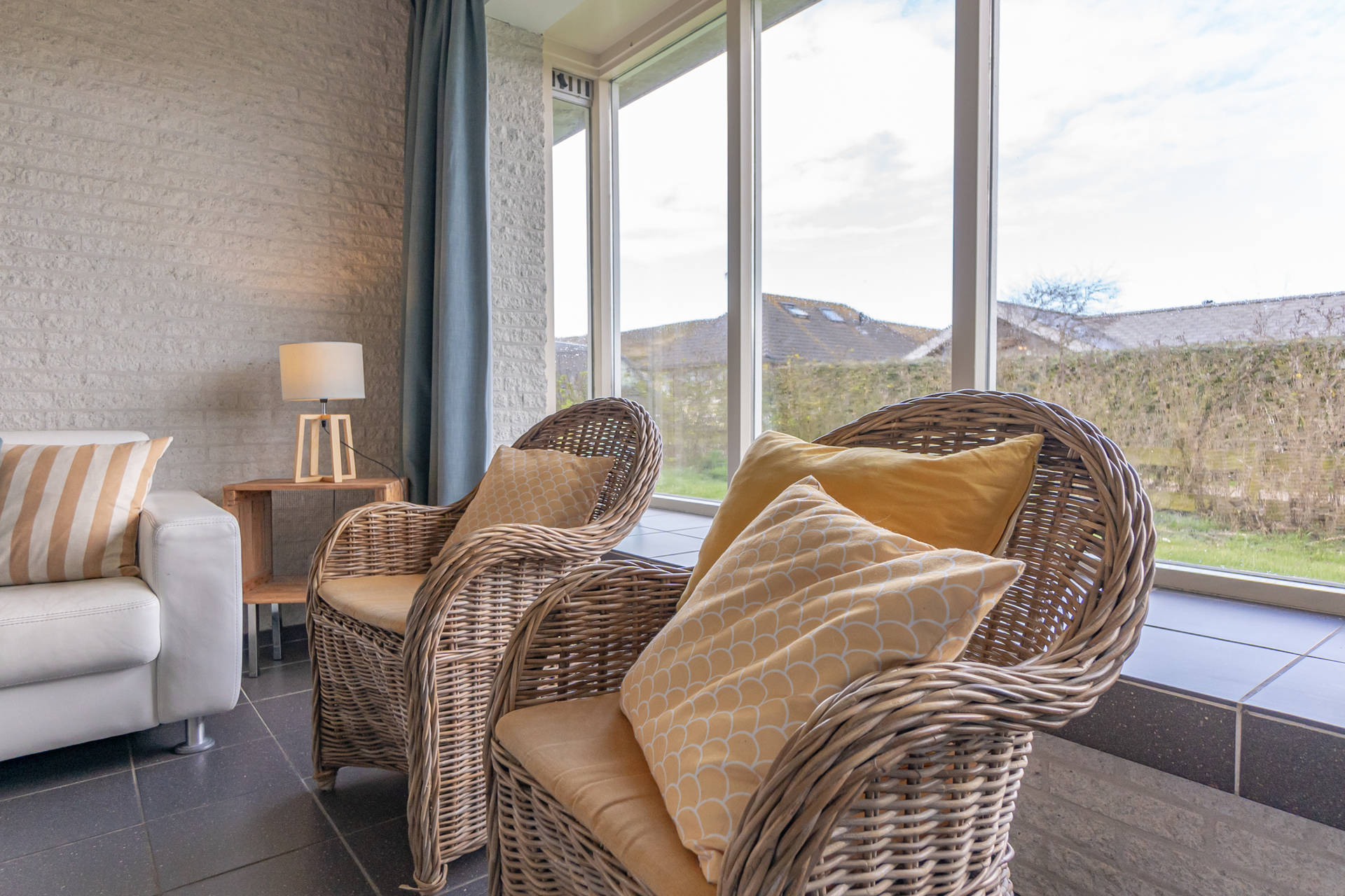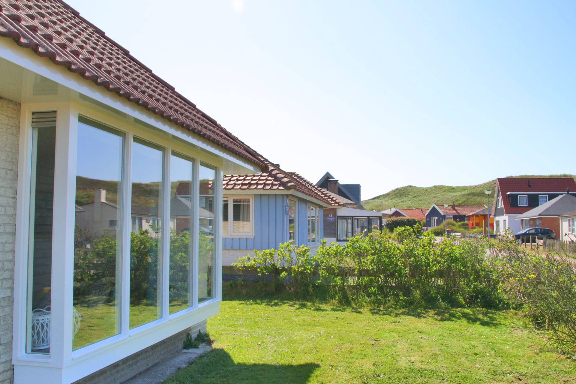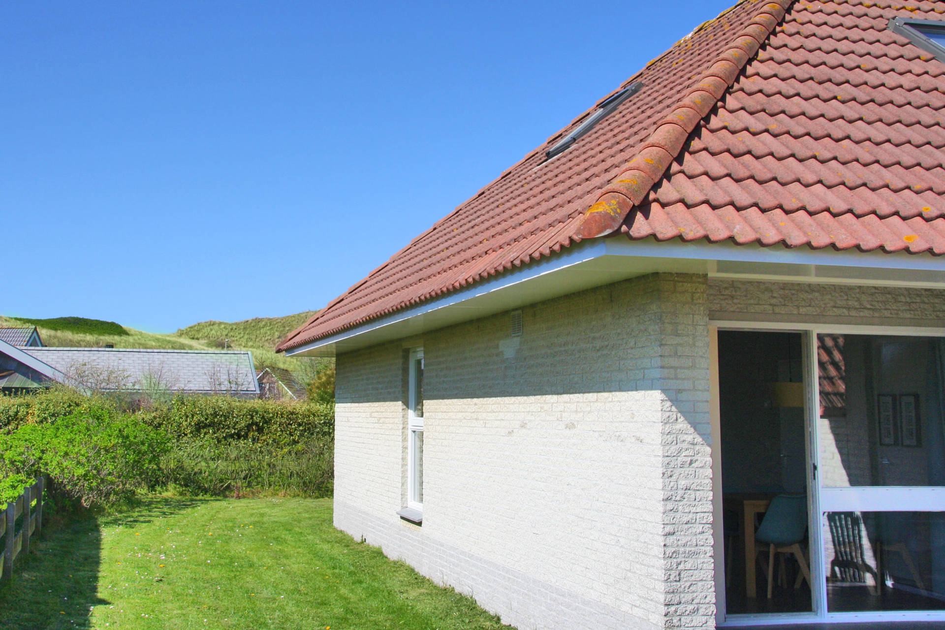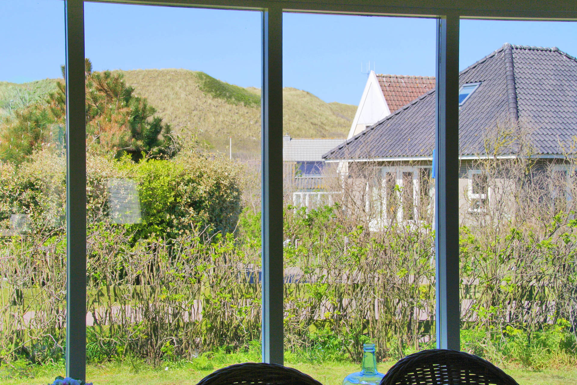 Vanuit de woonkamer uitzicht op de duinen.