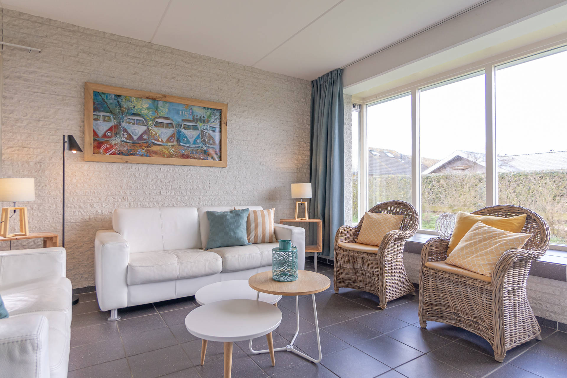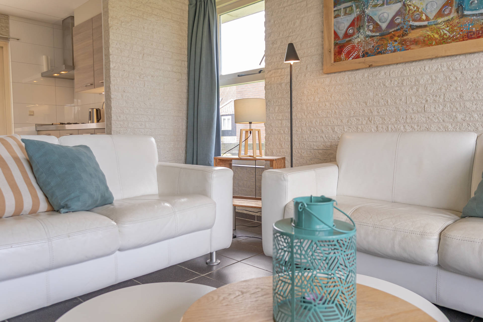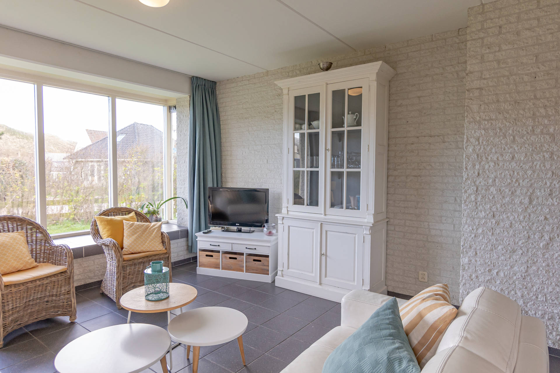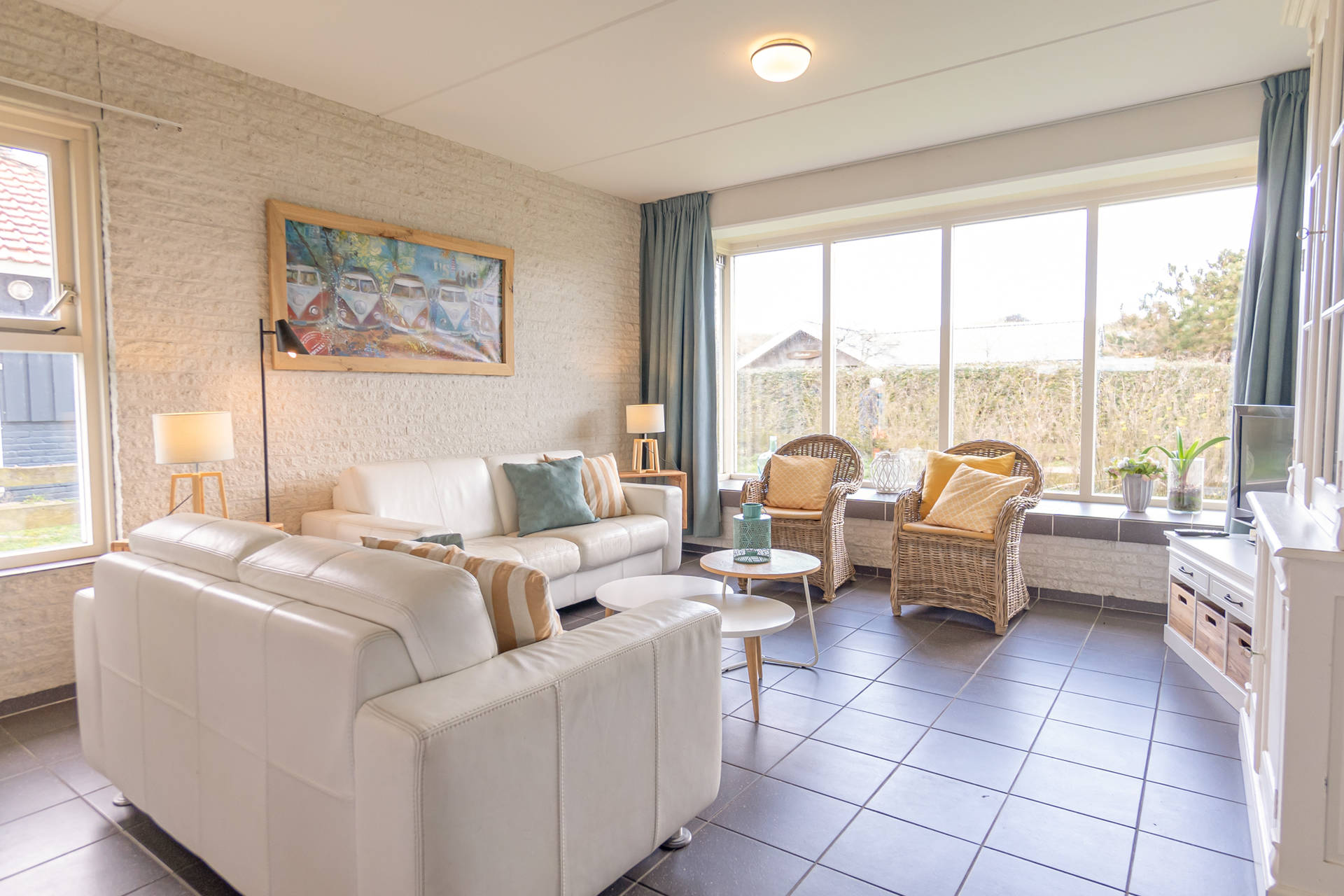 Vanuit de woonkamer uitzicht op de duinen.