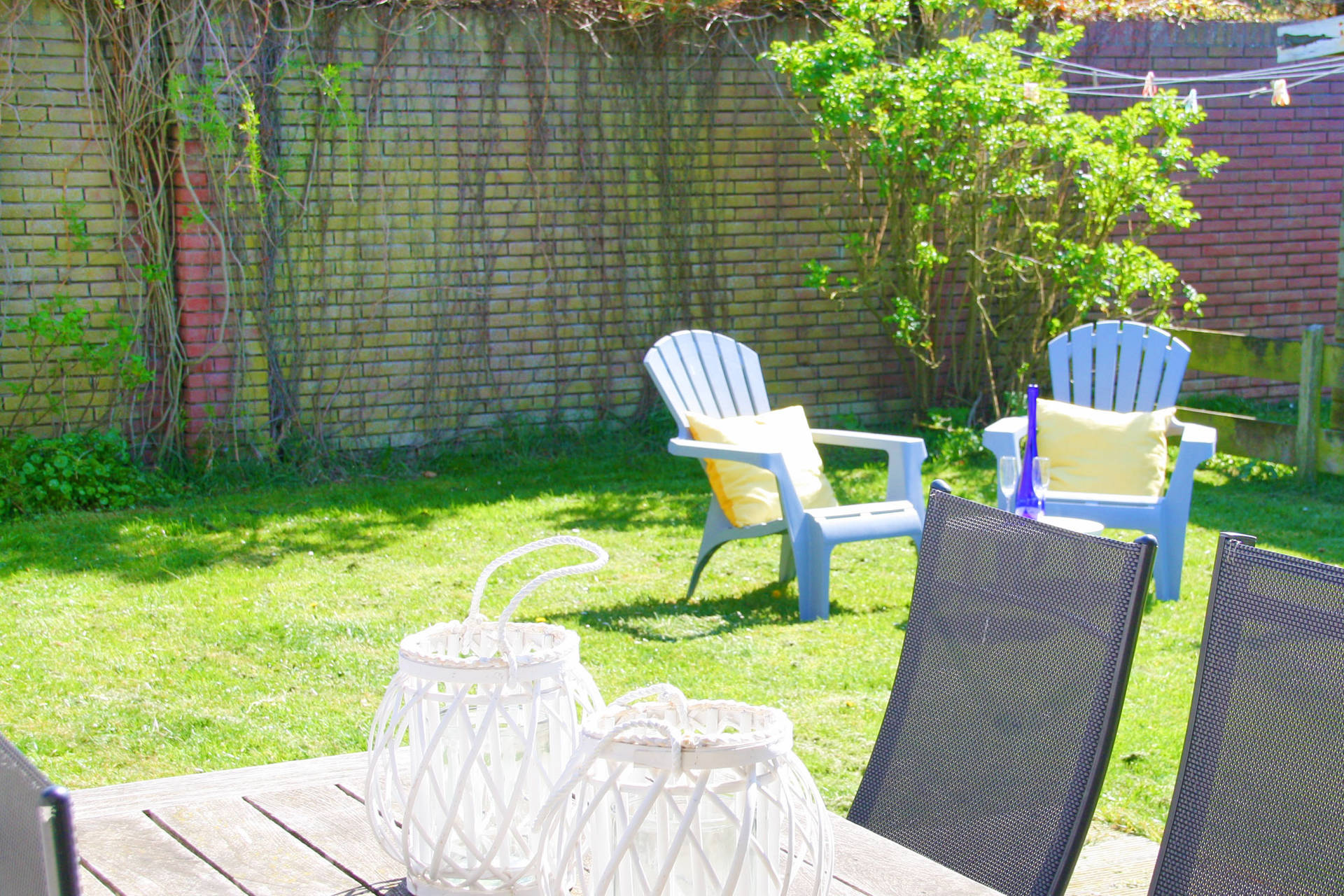 De tuin is voor het grootste deel omheind en bied voldoende privacy. Het huis heeft aan de achterzijde een terras en een aparte berging met wasmachine.