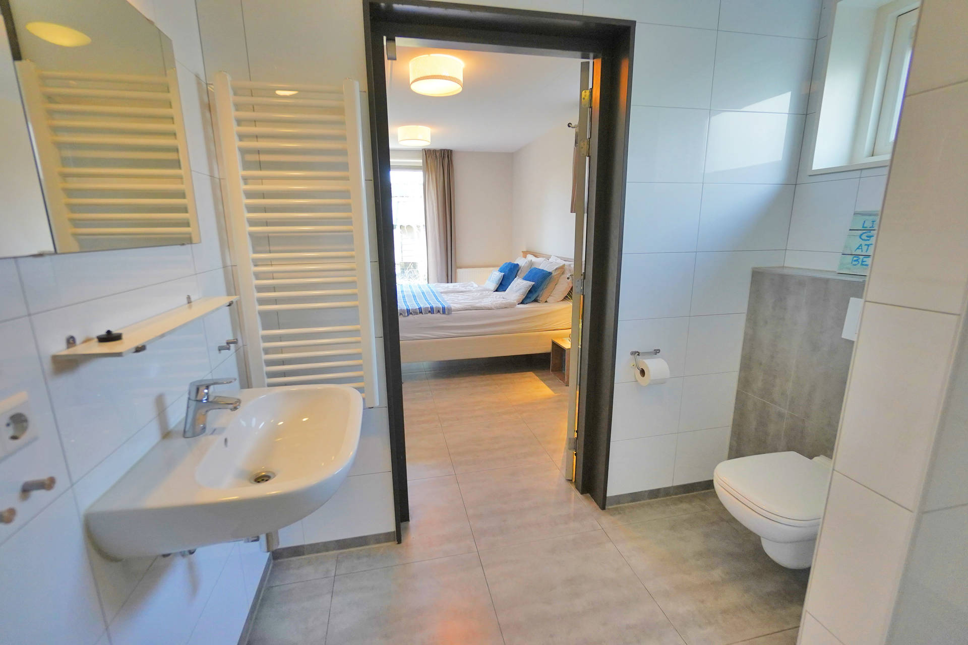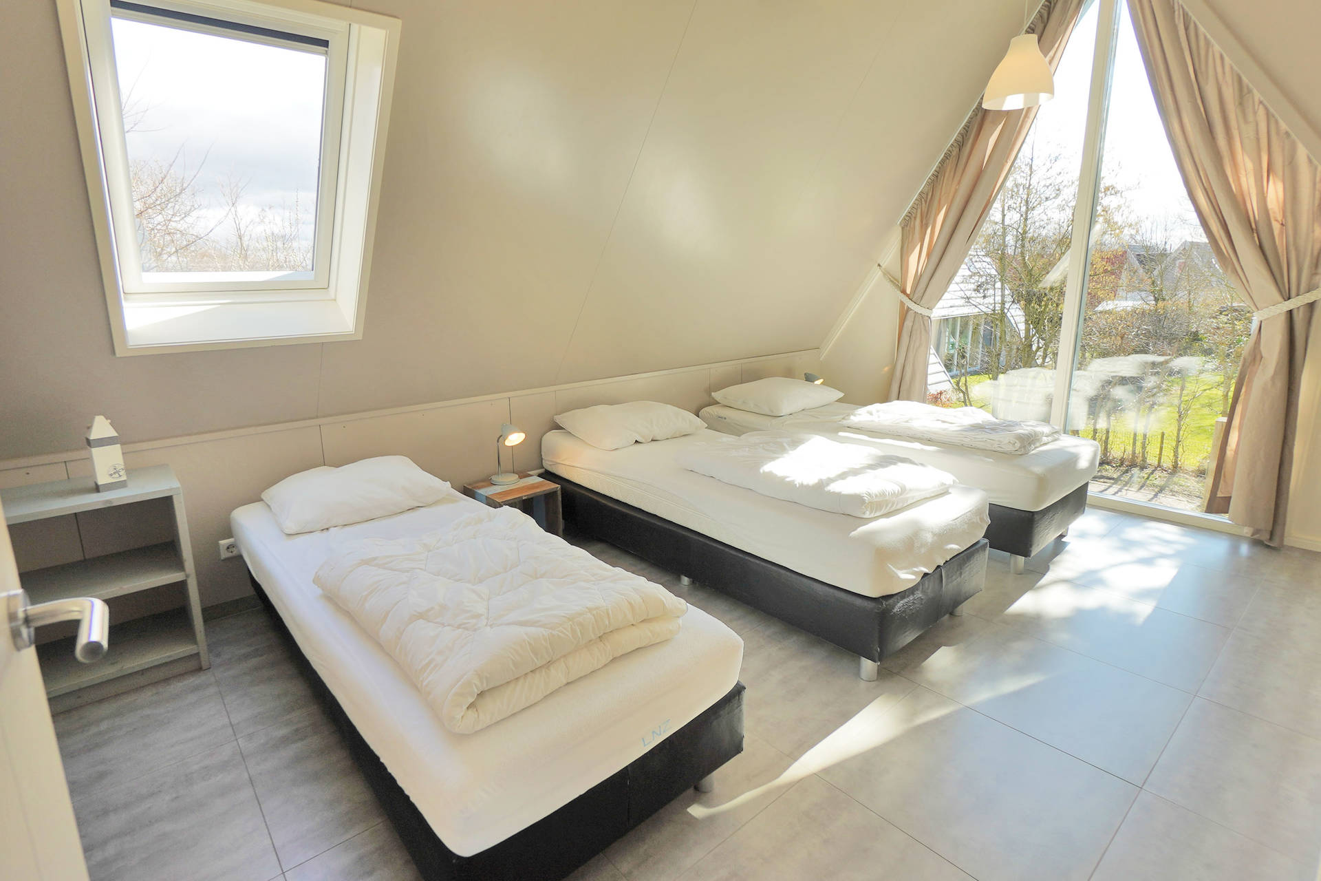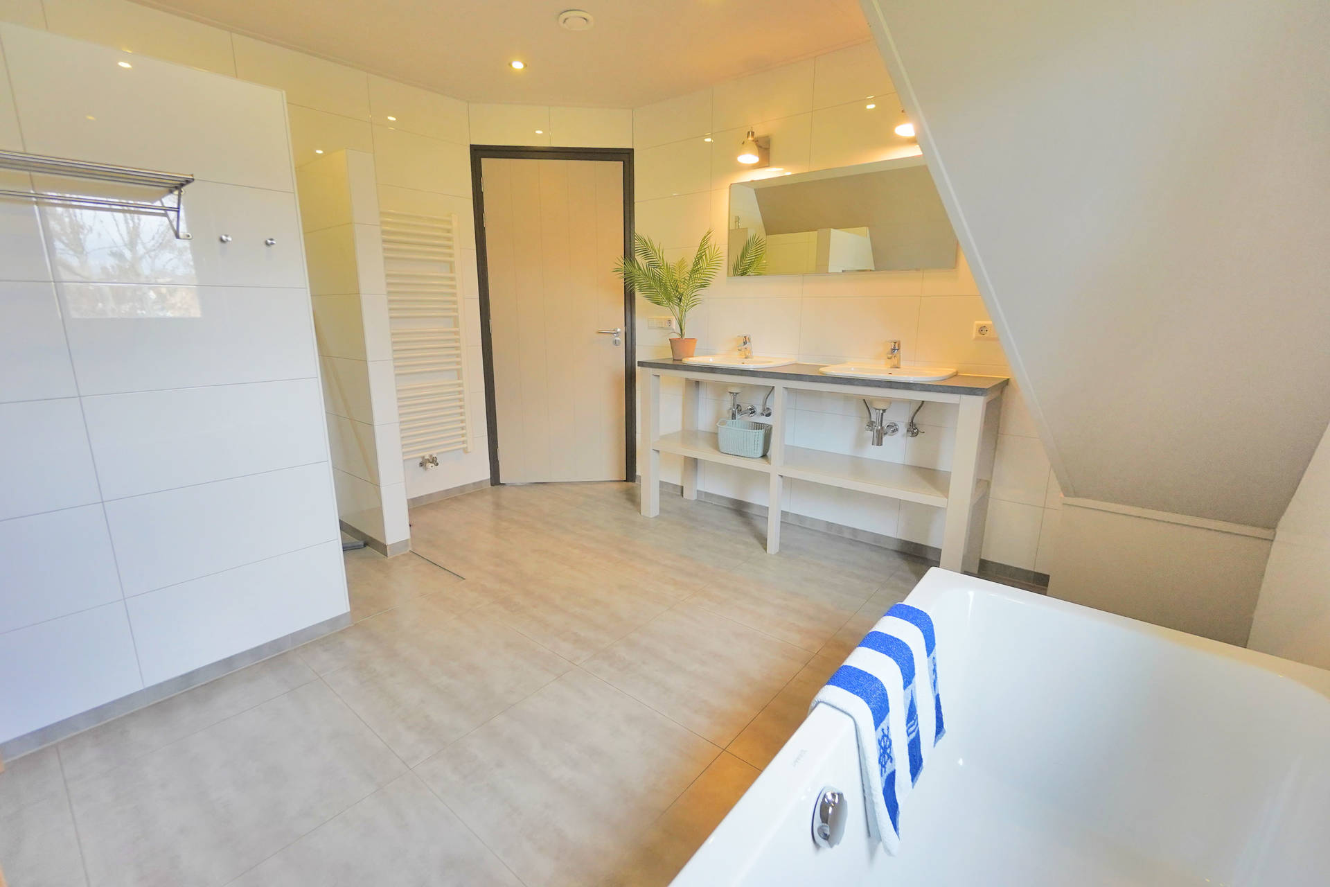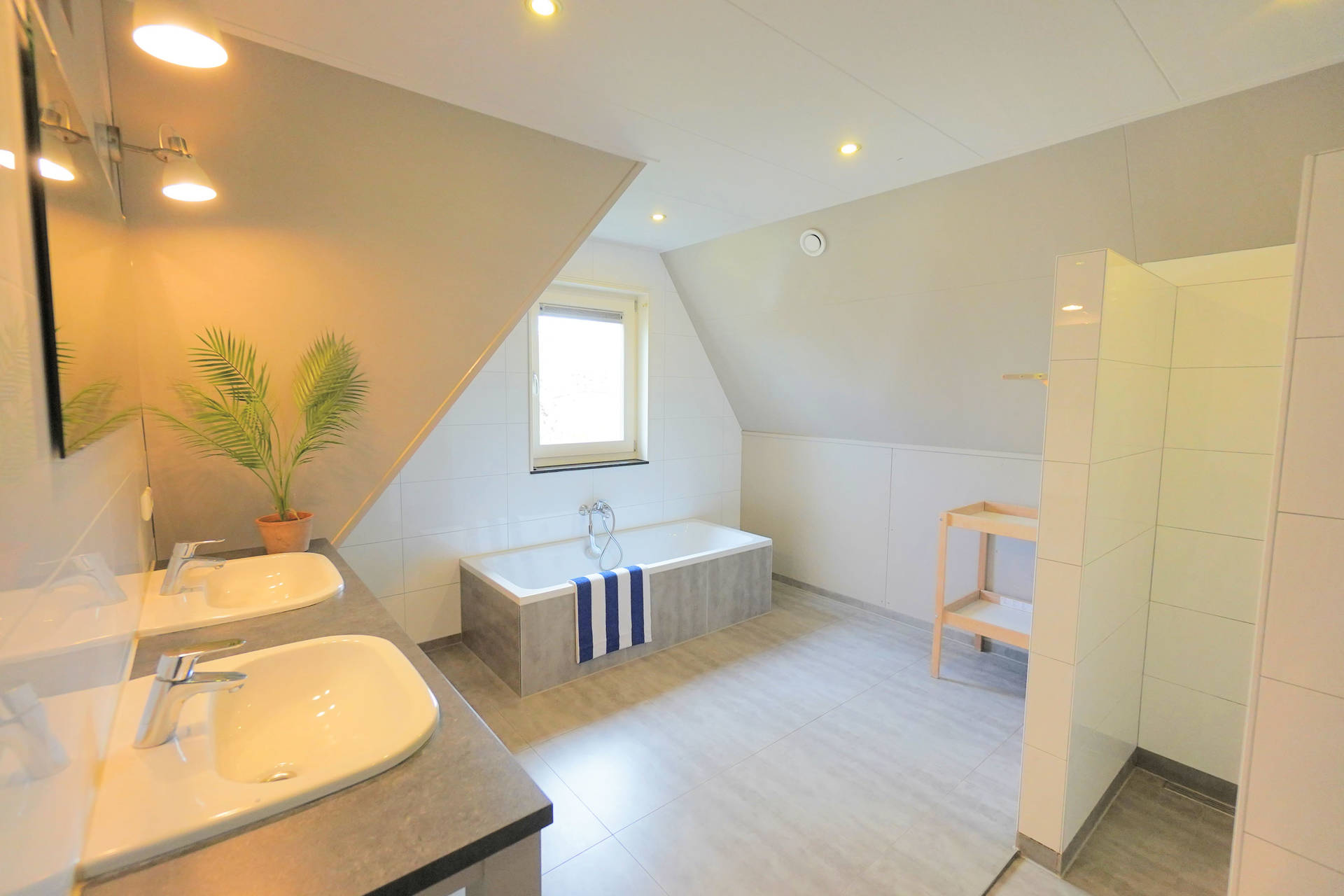 Op de bovenverdieping zijn 4 slaapkamers, een grote badkamer met een ligbad, douche en dubbele wastafel. Tevens is er een aparte toiletruimte. De trap heeft boven een vast traphekje. Alle bedden zijn eenpersoons boxspring bedden.