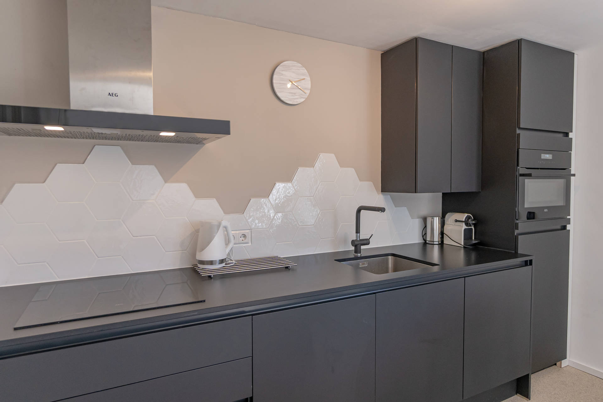 Zin om een heerlijke maaltijd te bereiden? De moderne keuken is voorzien van genoeg kastruimte, een inductiekookplaat, vaatwasser, koelkast, filter koffiezetapparaat, nespresso en combi oven.