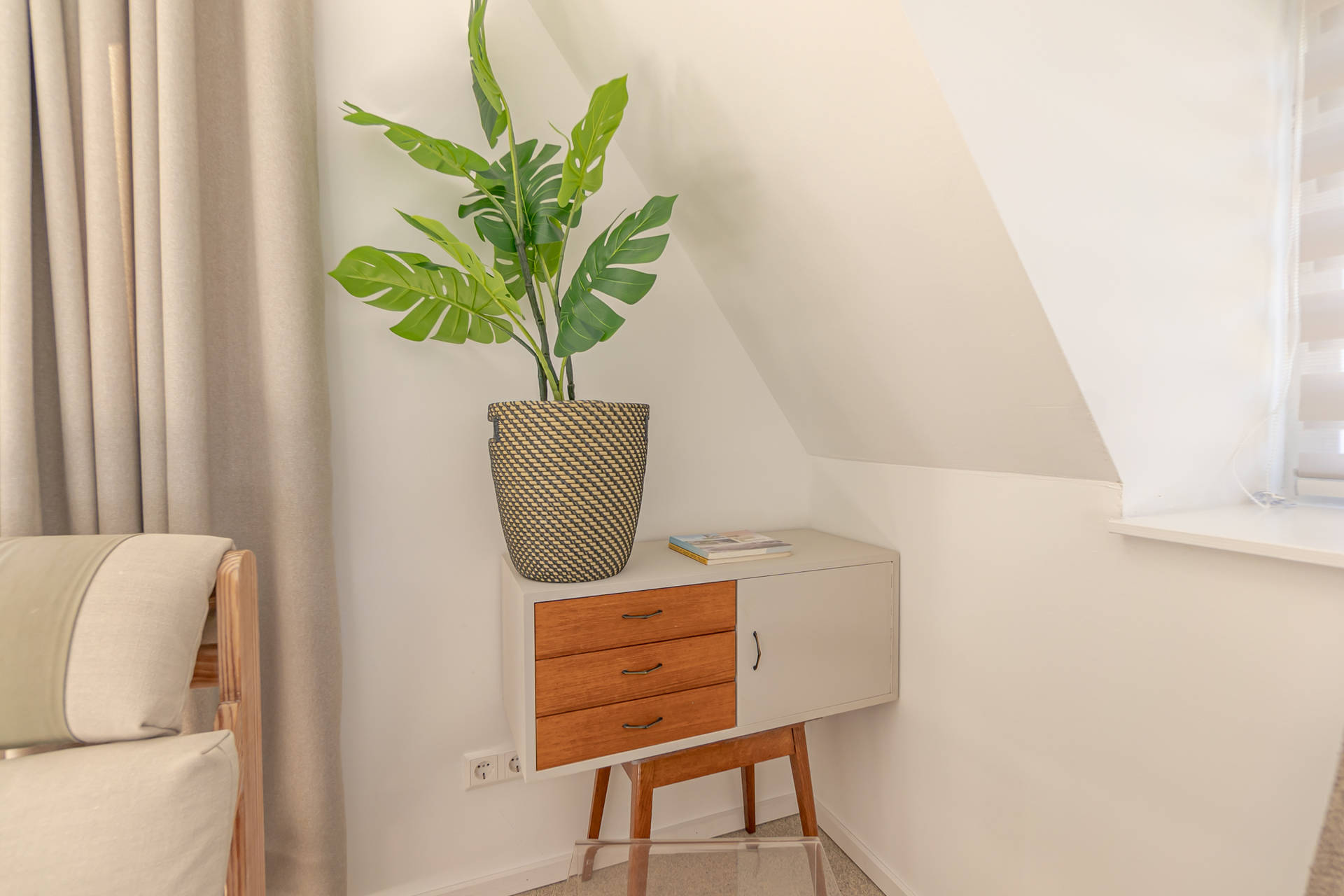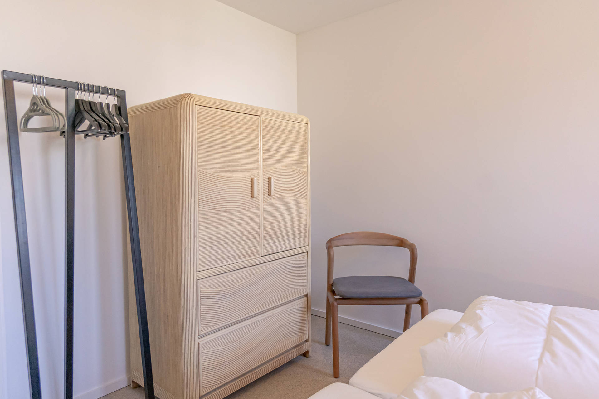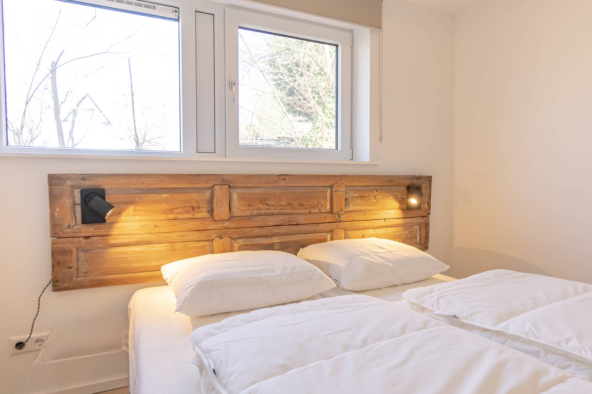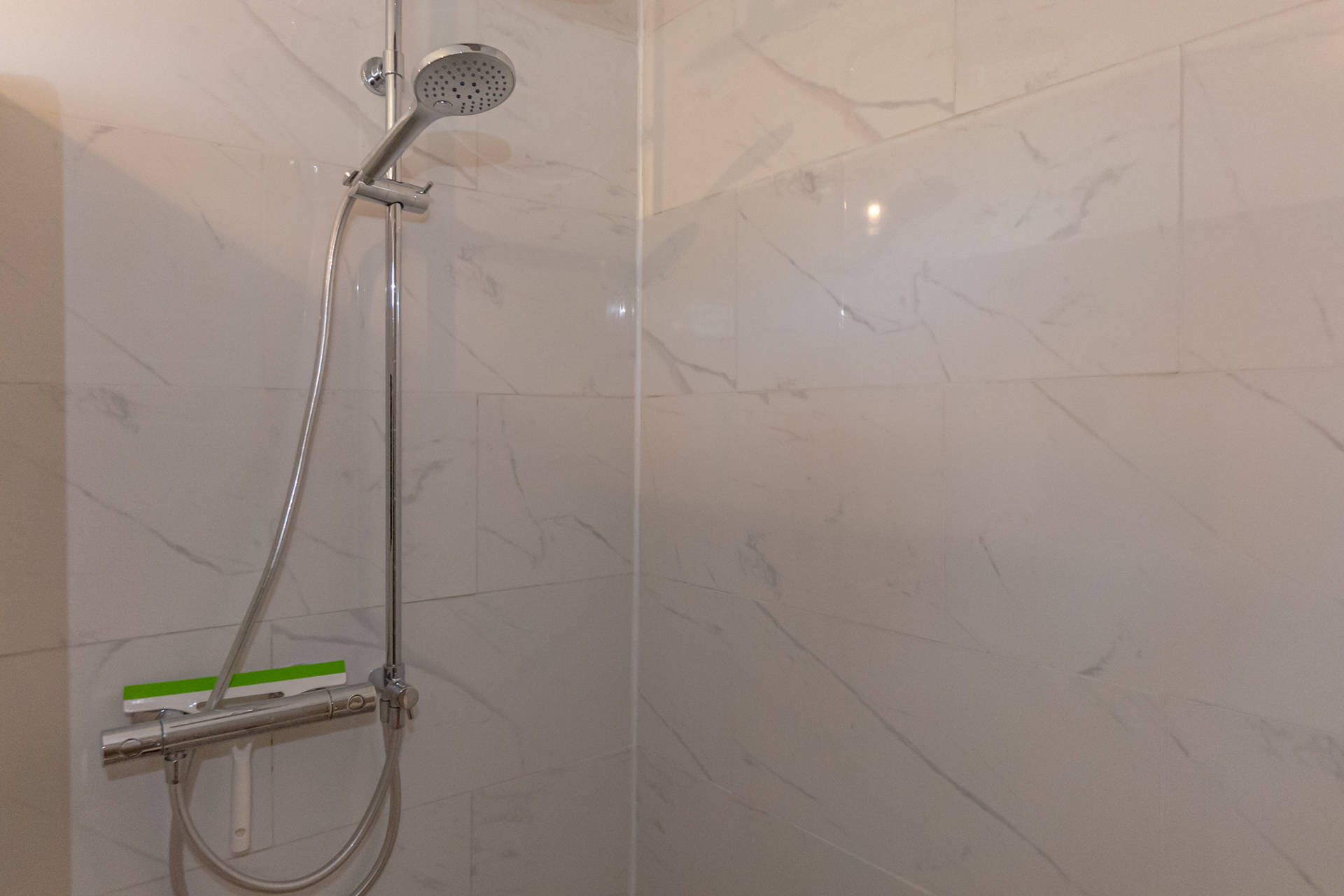 De slaapkamers beschikken elk over 2 eenpersoonsbedden. De badkamer is voorzien van een inloop opbouw regendouche, wastafel en toilet. In de hal is overigens nog een separaat toilet aanwezig. In de berging waar u via buiten kunt komen bevindt zich een wasmachine en droger.
