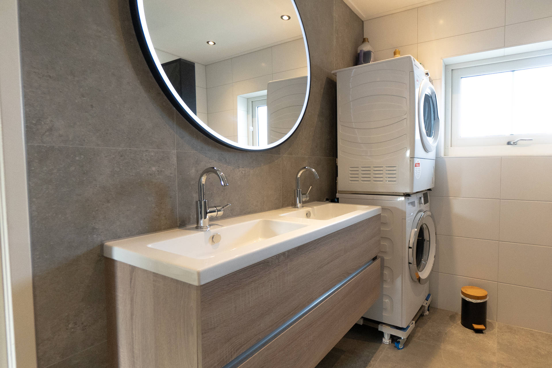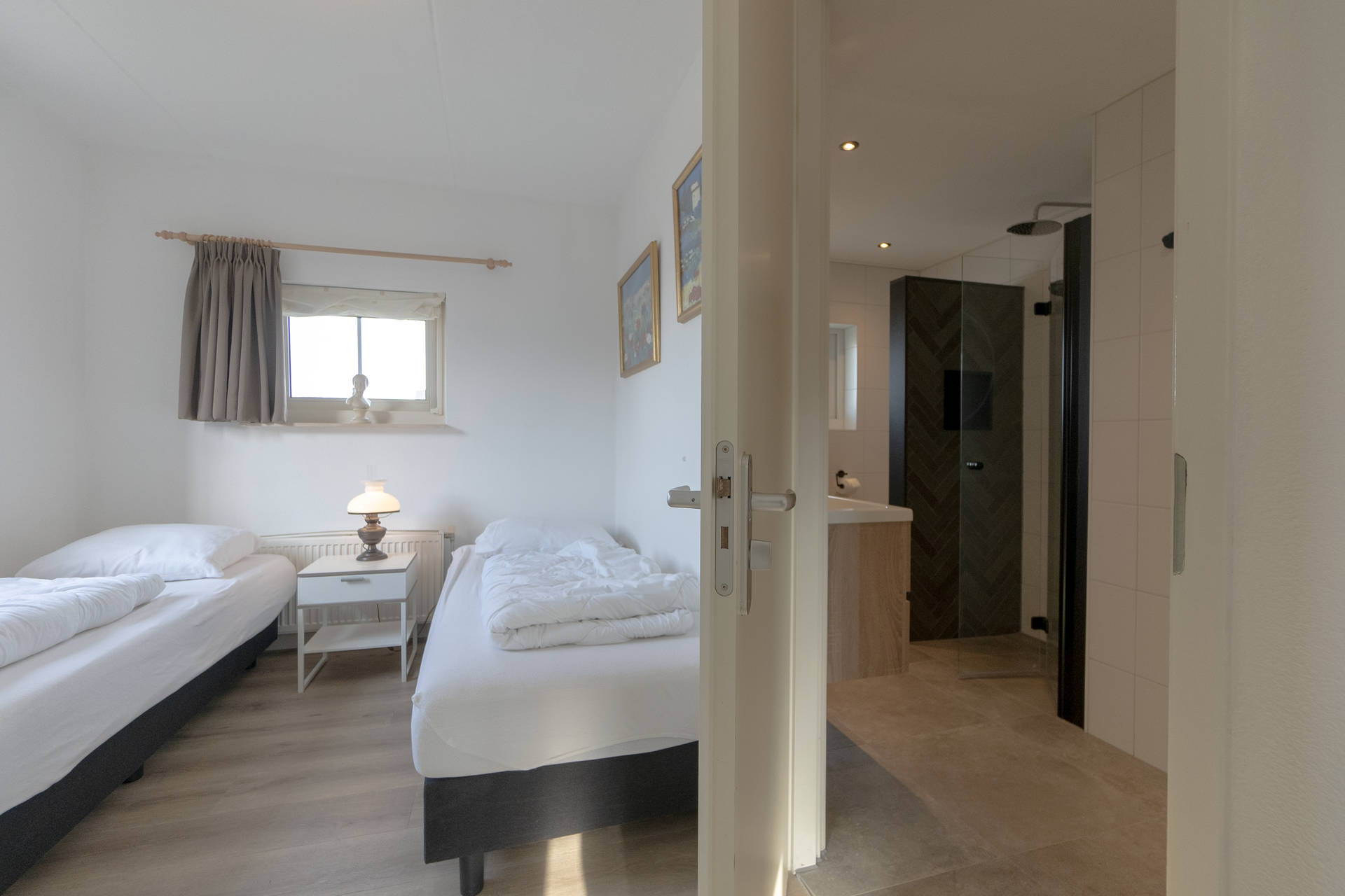 In Villa Noot is het Hollands verblijven met een ruime en lichte woonkamer. De keuken is van alle gemakken voorzien en beschikt over een vaatwasser, oven, magnetron, Senseo filter koffiezetapparaat en een koelkast met ruim vriesvak. Tussen de keuken en de woonkamer staat een eettafel die 6 zitplekken heeft. Daarnaast heb je op de begane grond een slaapkamer met 2 eenpersoonsbedden, een wc en badkamer en suite en nog een gasten toilet in de hal. In de badkamer beneden staan een wasmachine en droger.