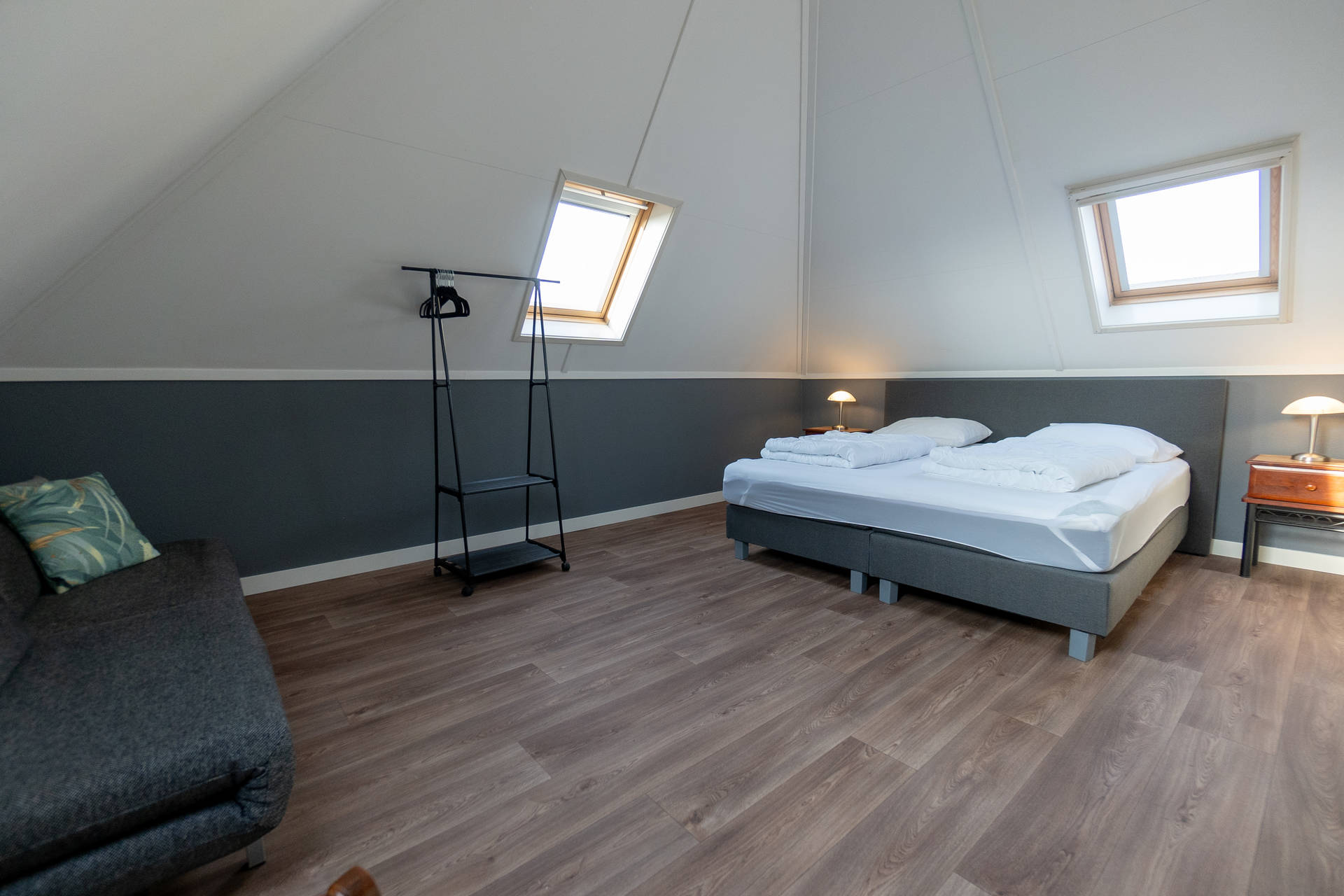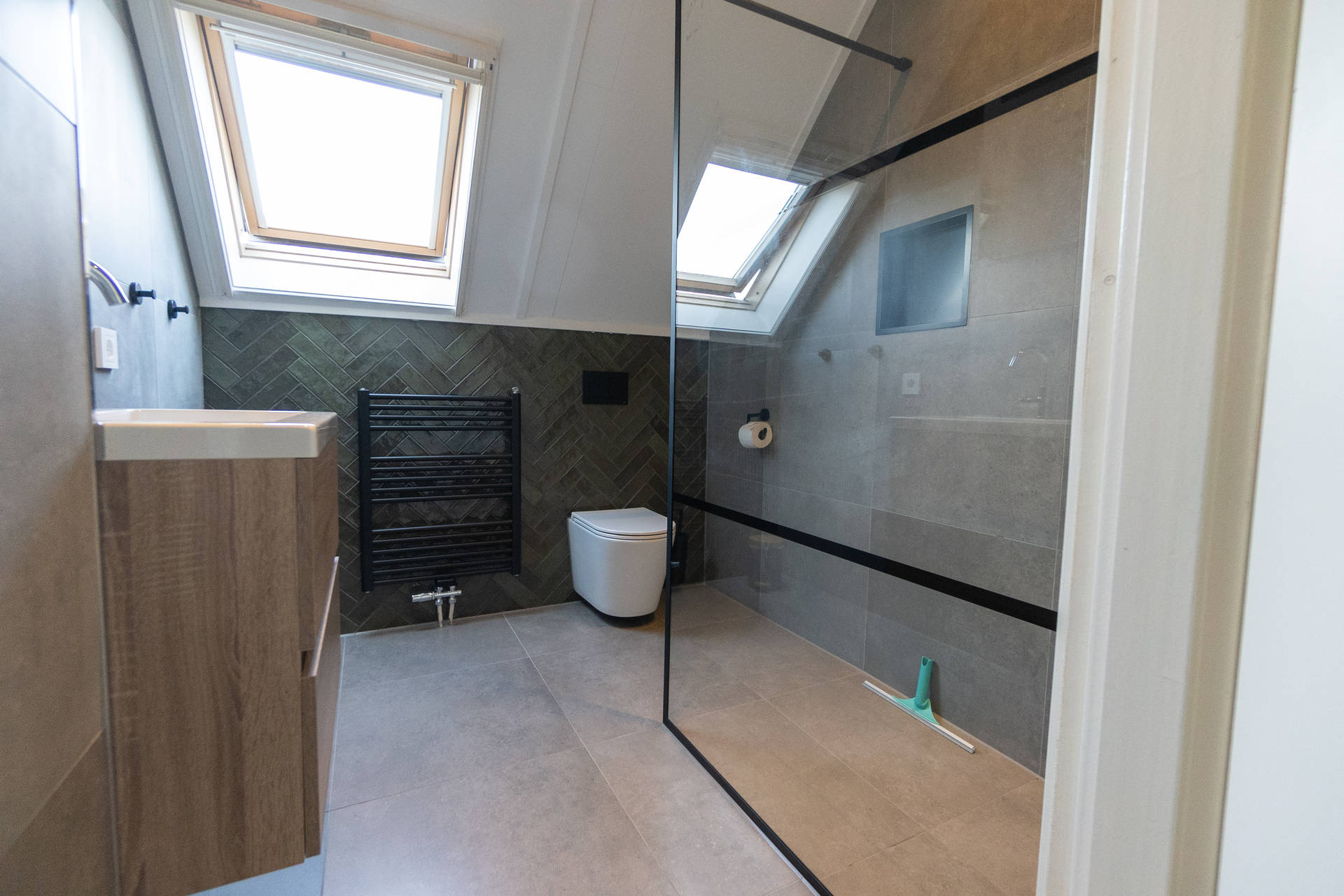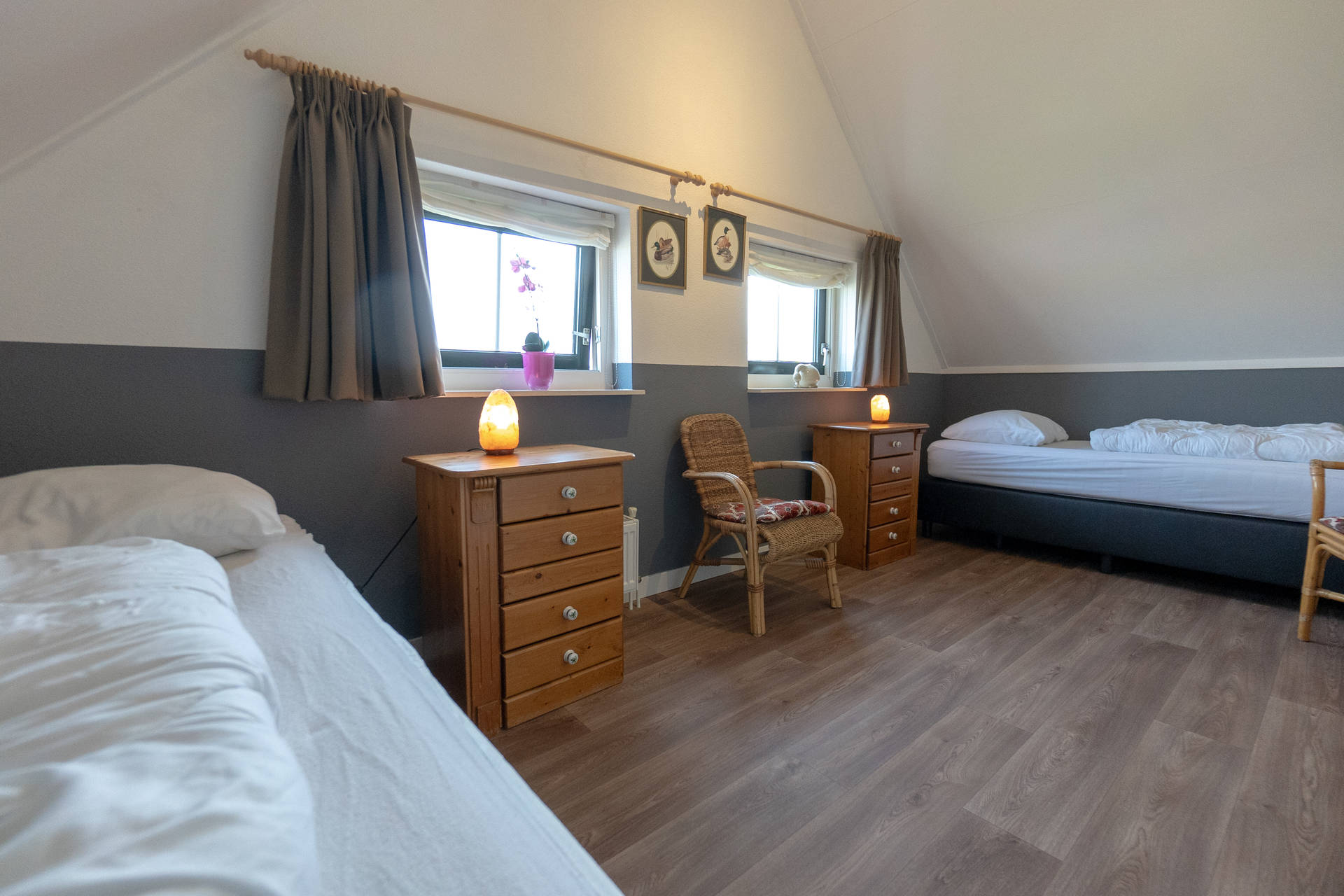 Op de eerste verdieping heb je twee slaapkamers waarvan eentje met een tweepersoonsbed en een slaapkamer met 2 eenpersoonsbedden en een 2de badkamer met douche en toilet.