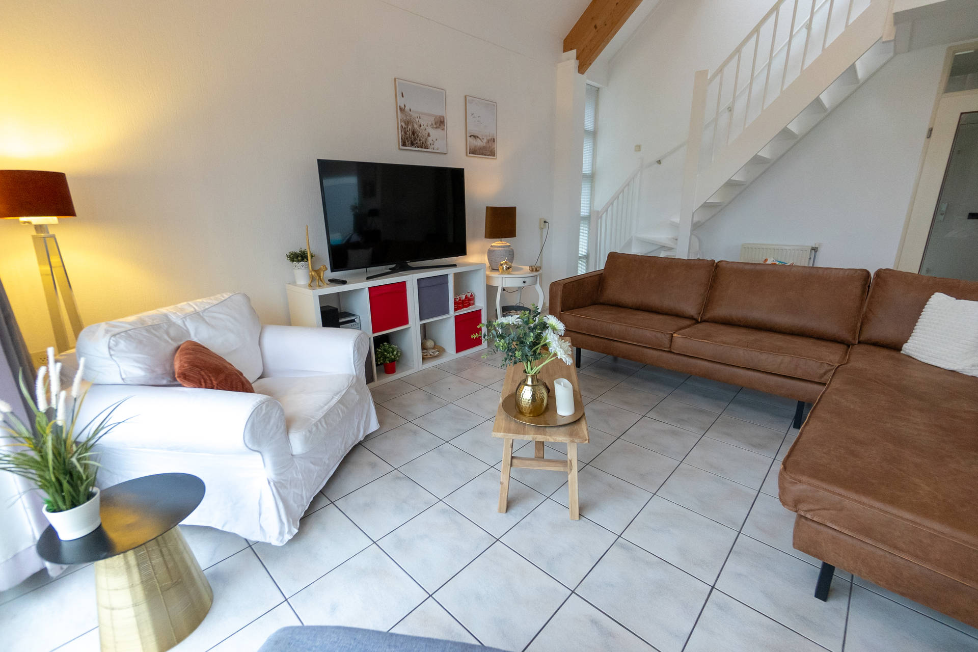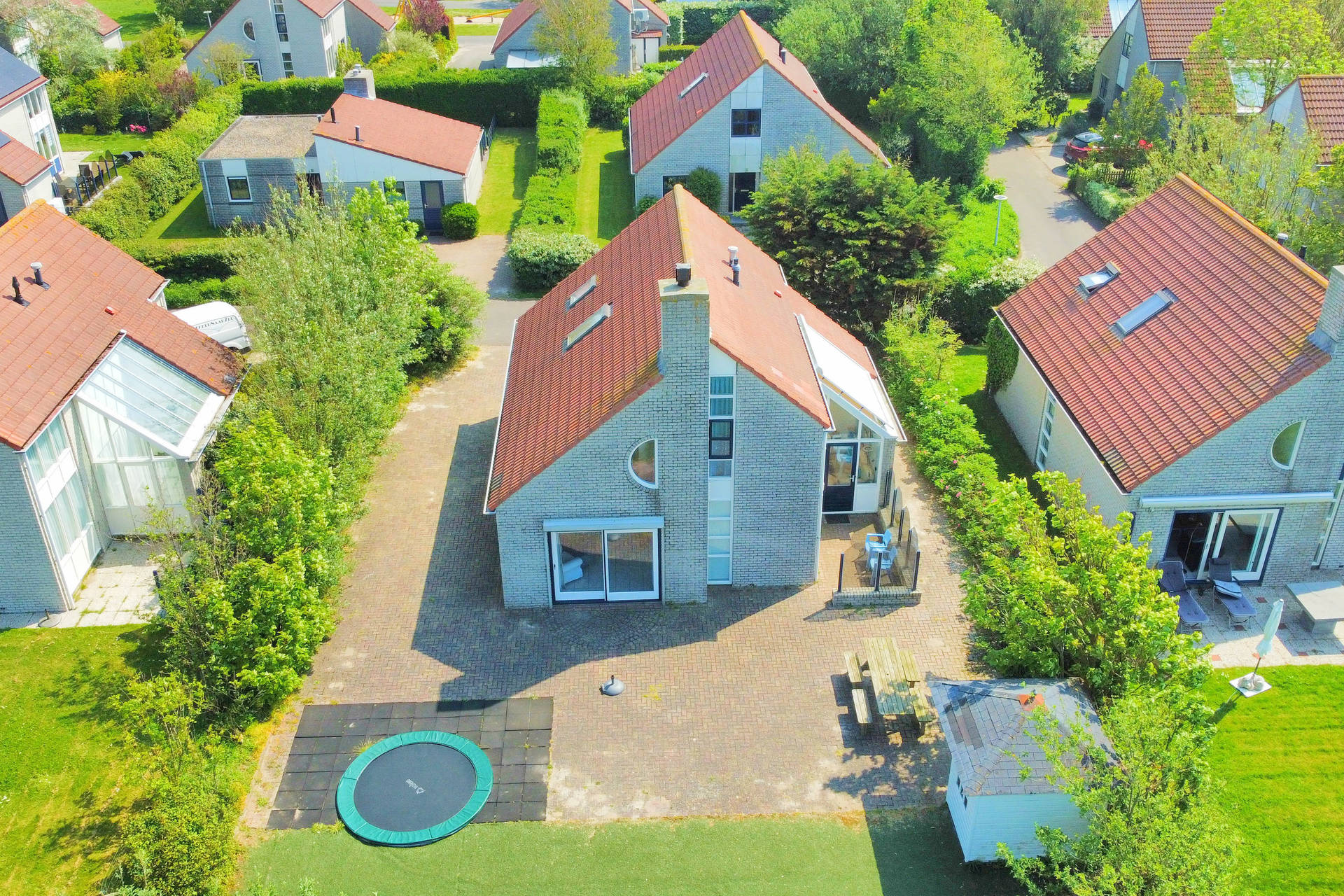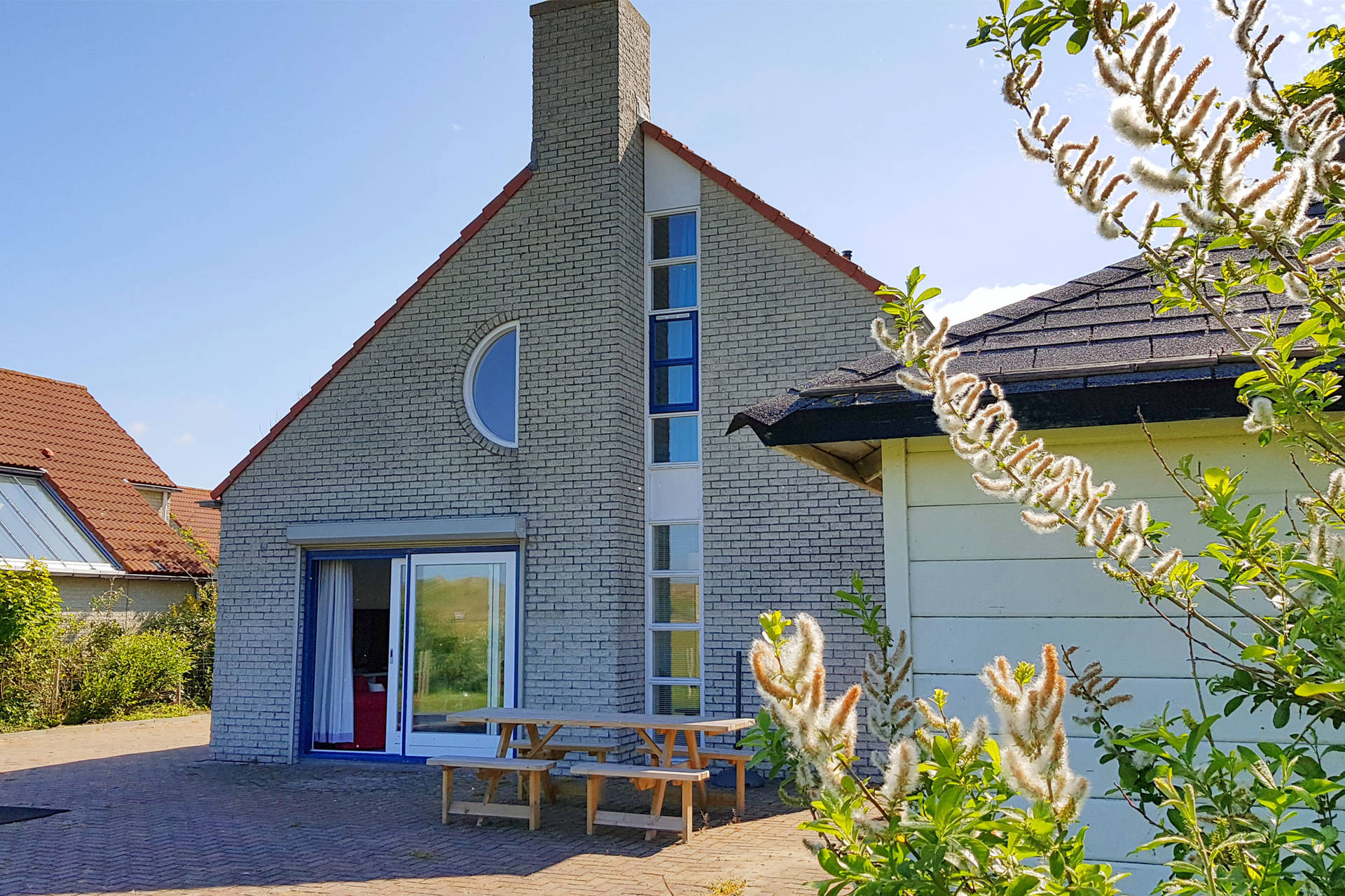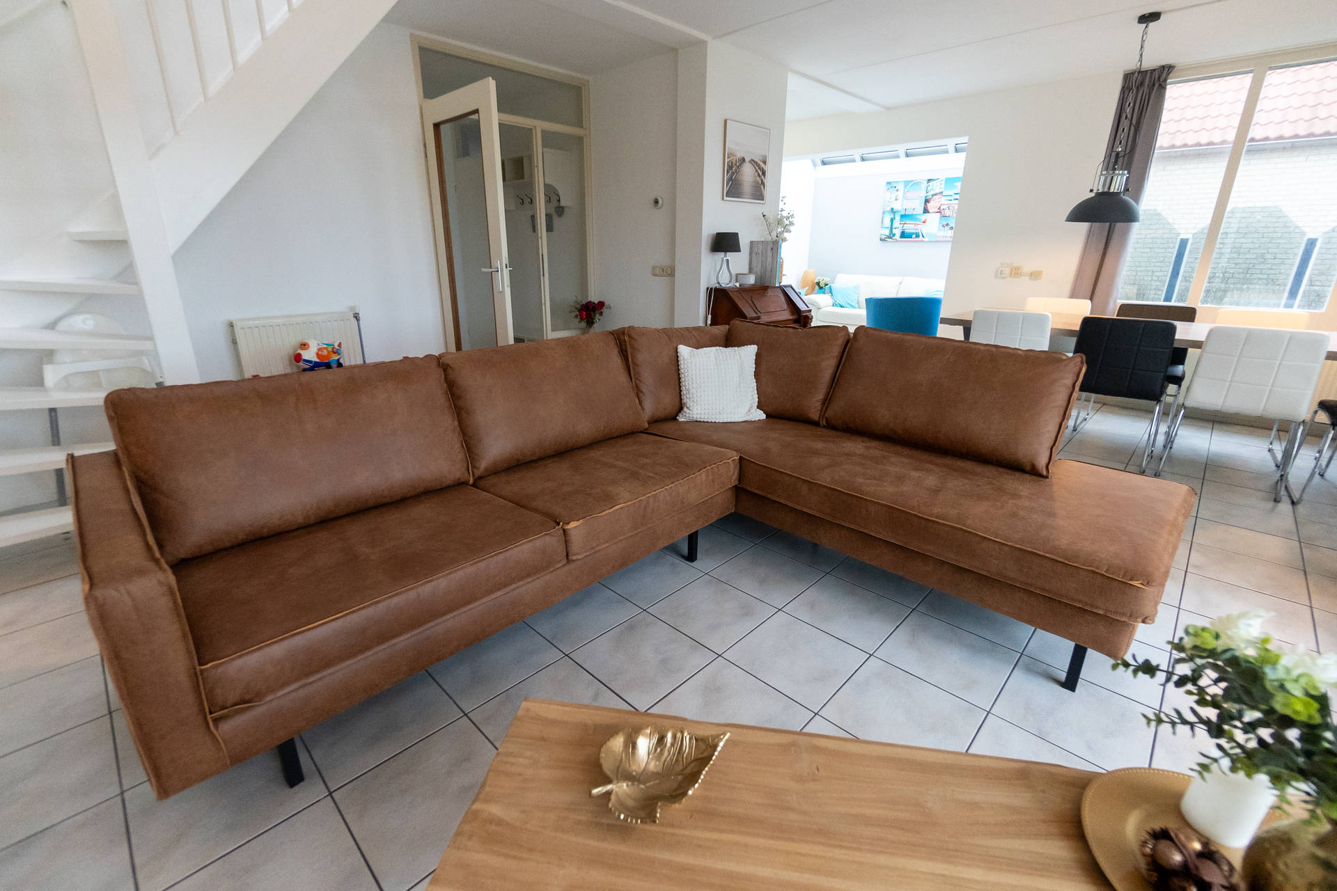Het vakantiehuis heeft een ruime, lichte woonkamer op het zuidwesten met toegang tot het terras met trampoline. Het gebruik van de trampoline is op eigen risico. Er is ook een nieuwe open keuken met combi-oven, vaatwasser, koelkast, koffiezetapparaat, 4-pits gasfornuis. Er is een vriezer in de berging. De villa heeft ook een 2e kleine zithoek in de serre.