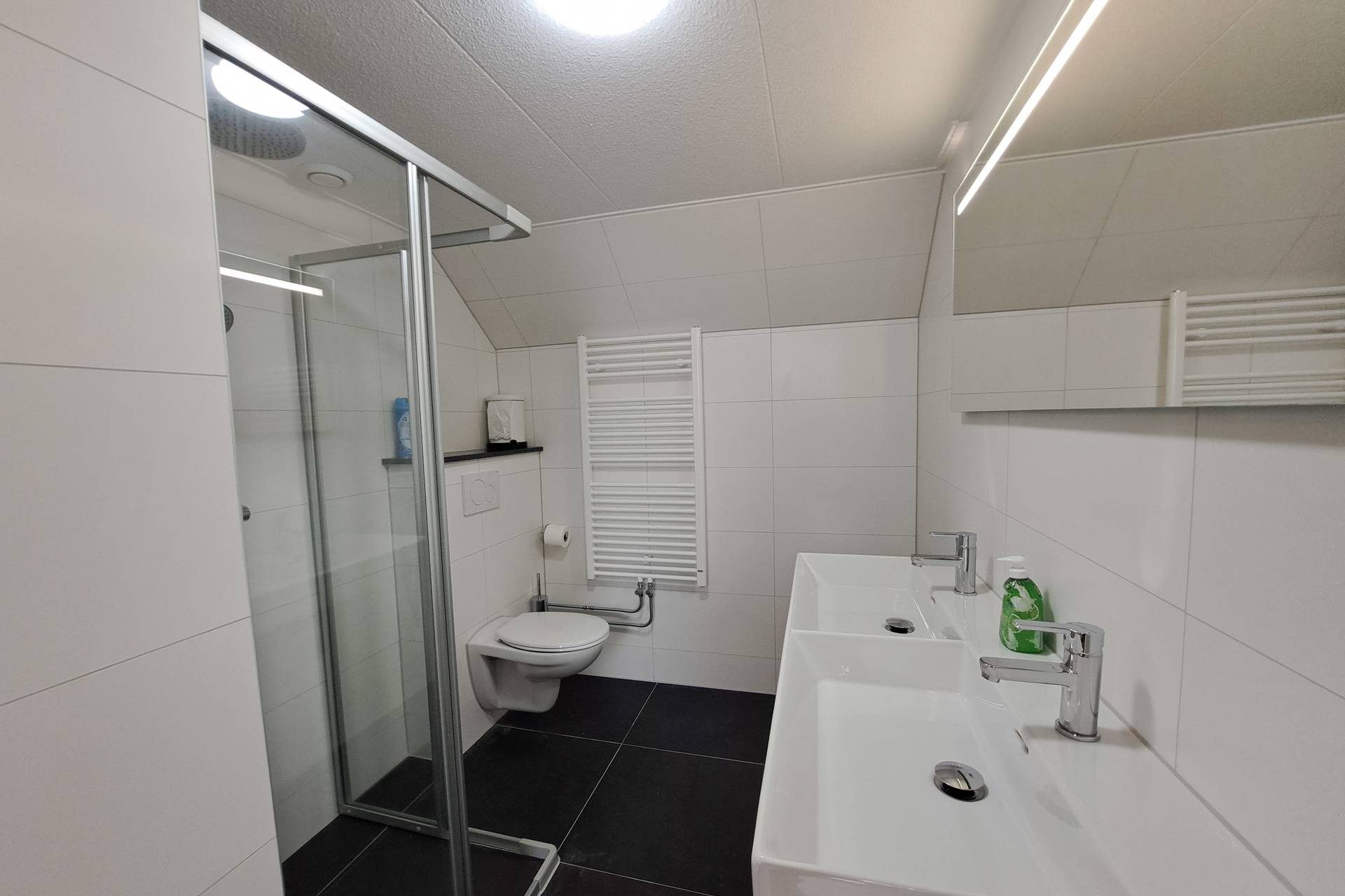 De woning beschikt over 3 slaapkamers. 1 Slaapkamer en de badkamer met ligbad en inloopdouche zijn op de begane grond.