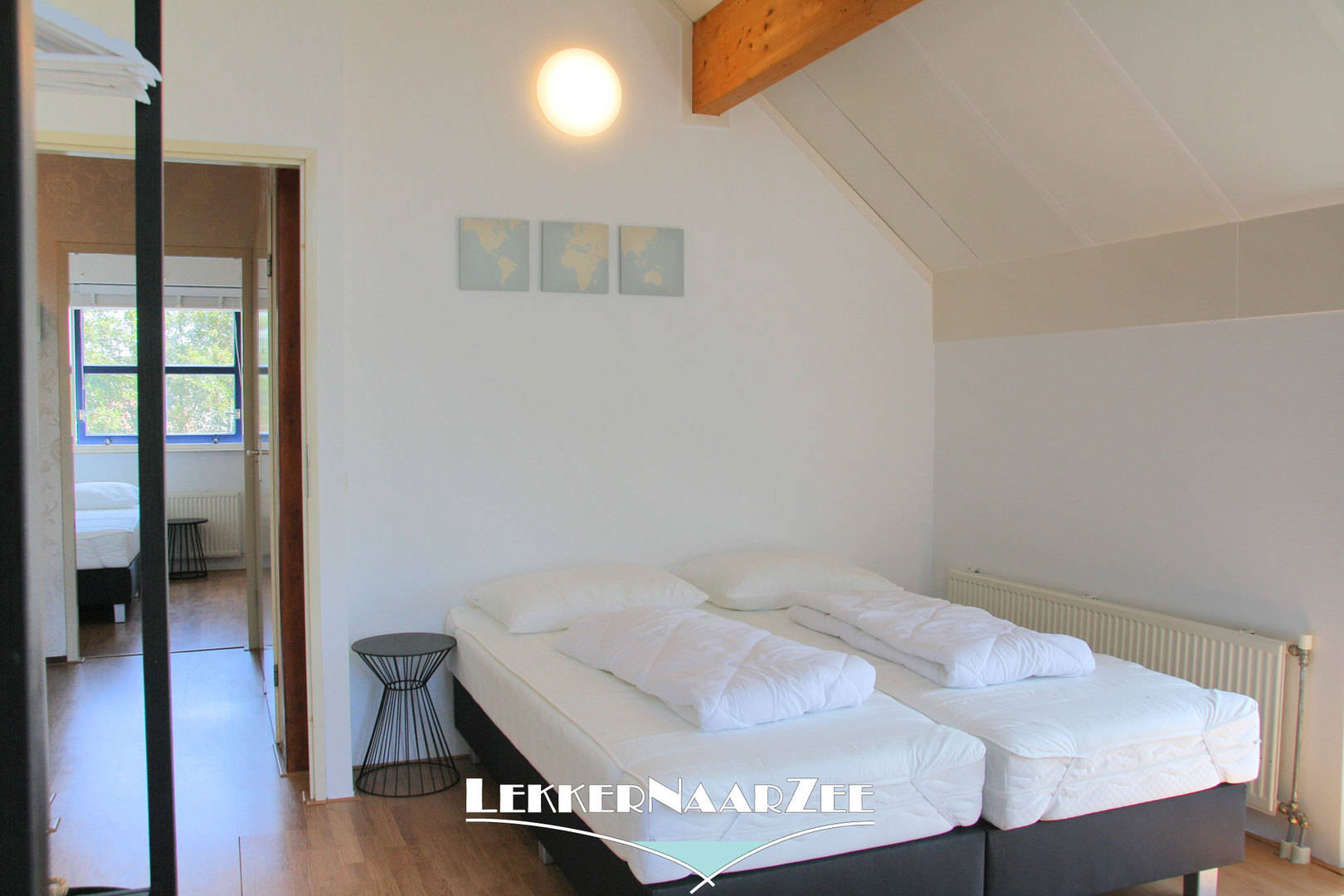 De twee overige slaapkamers met 3 bedden elk zijn op de 1ste verdieping. Hier is tevens de sauna, de tweede badkamer met douche, wasbak en de wasmachine + droger.