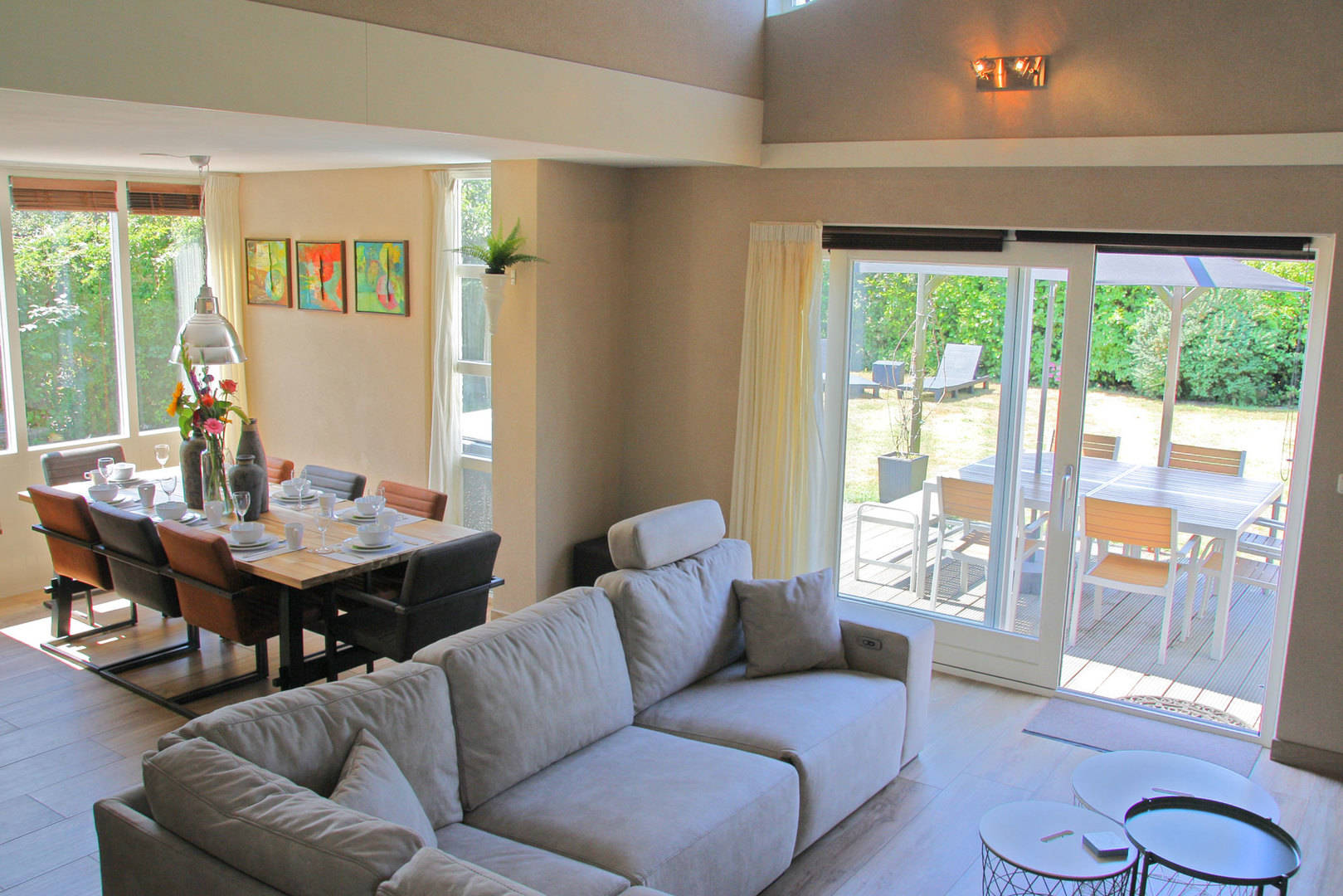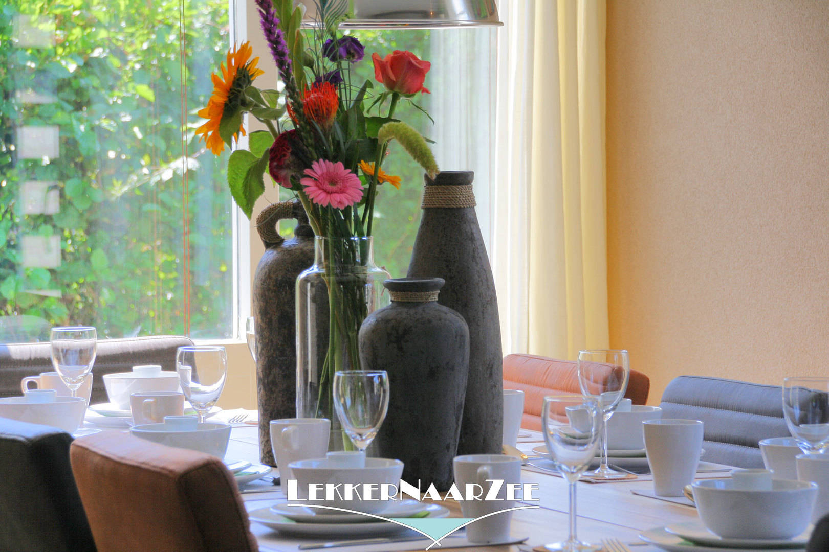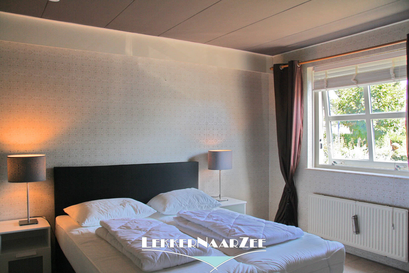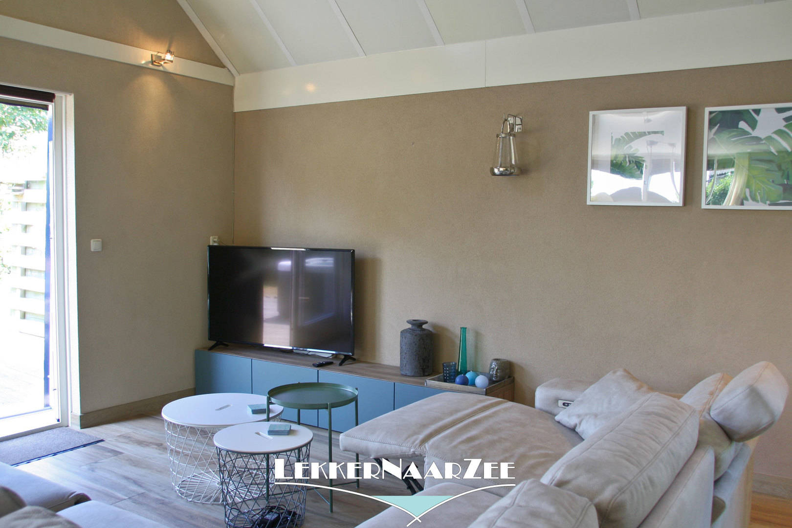 De vakantiewoning beschikt over een heerlijk ruime lichte woonkamer met goed omheinde tuin op het zuid westen. De woonkamer heeft een zeer ruime verstelbare bank en grote tv. Er is een open keuken met 5 pits gasfornuis en een zeer ruime Amerikaanse koelkast met vriesvak. De keuken is verder met vaatwasser, oven, magnetron, koffiezet apparaat en waterkoker van alle gemakken voorzien.